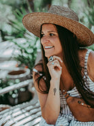 Sadie because we love a good rancher! Crafted from 100% Palm Straw, Sadie has a bold tall crown with a wide brim that makes for fantastic sun coverage. Sadie is completely structured, offering a stiff and sturdy exceptionally straight brim.