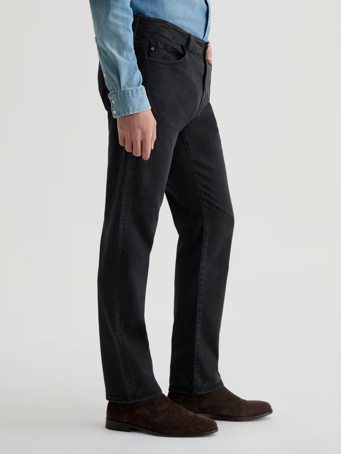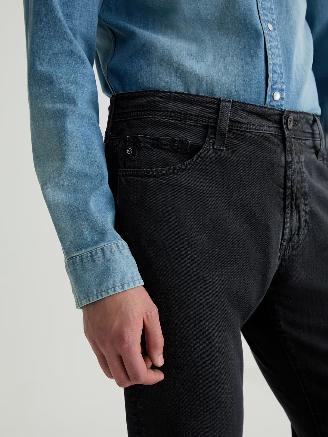 Our Everett slim straight jeans get a warm-weather update in 7.8 oz. Simple Twill Linen featuring a light, airy feel. There's a bit of stretch built in to ensure the fit moves with you. These five-pocket linen pants for men have a comfortable mid-rise waist and a straight fit that’s relaxed from hip to the knee before slightly tapering at the leg opening.