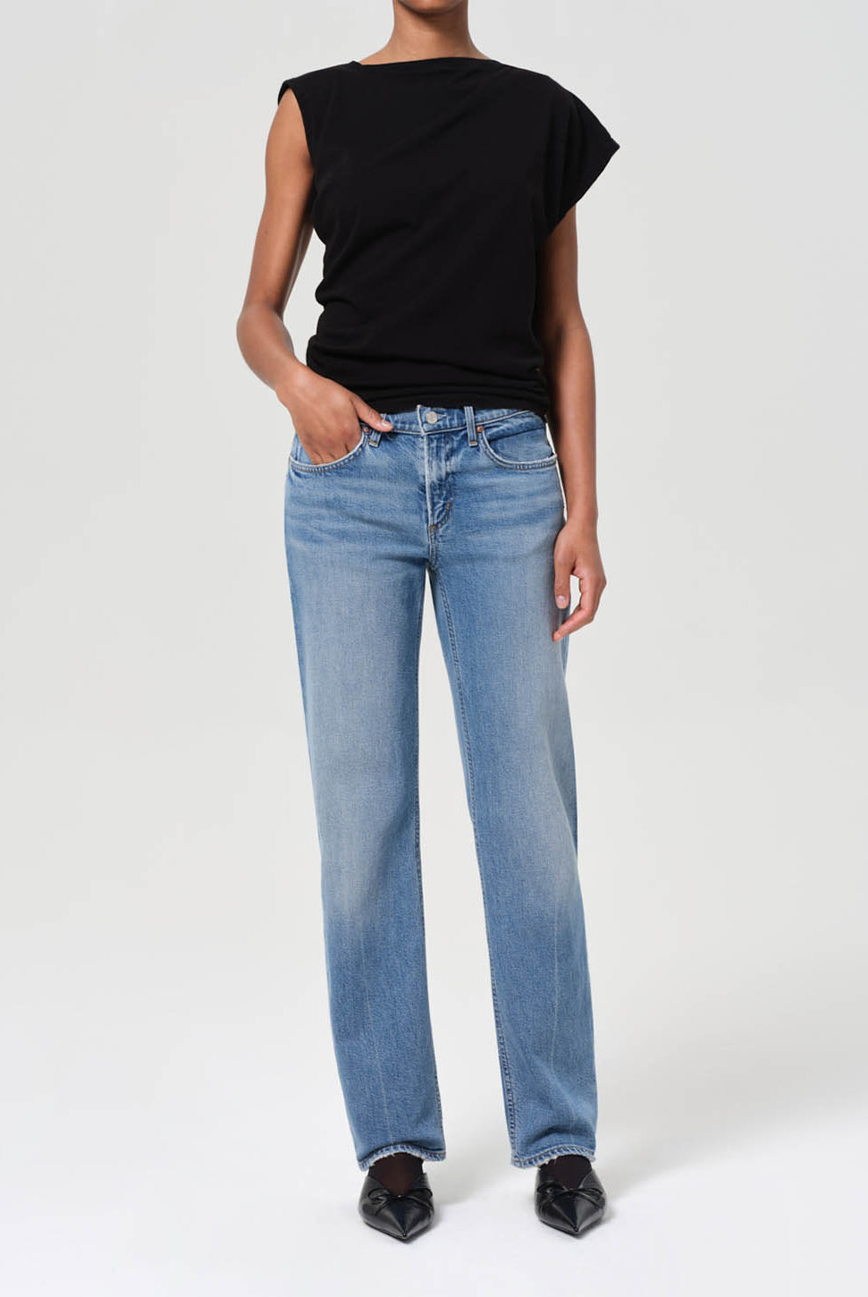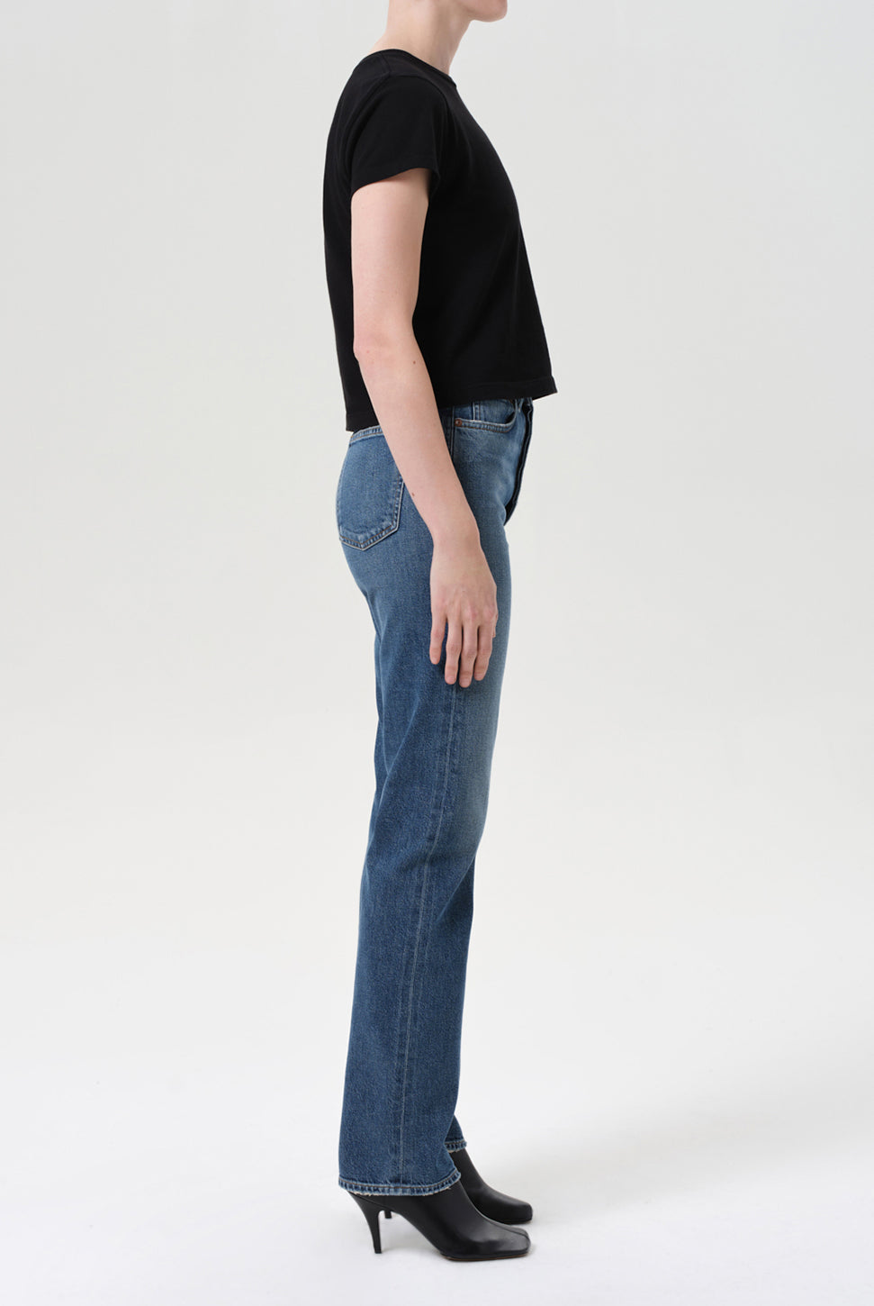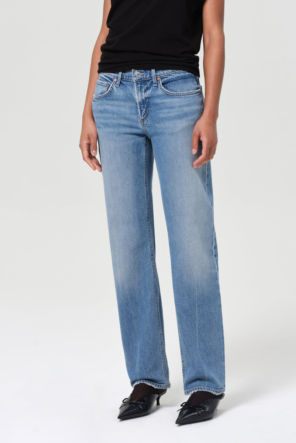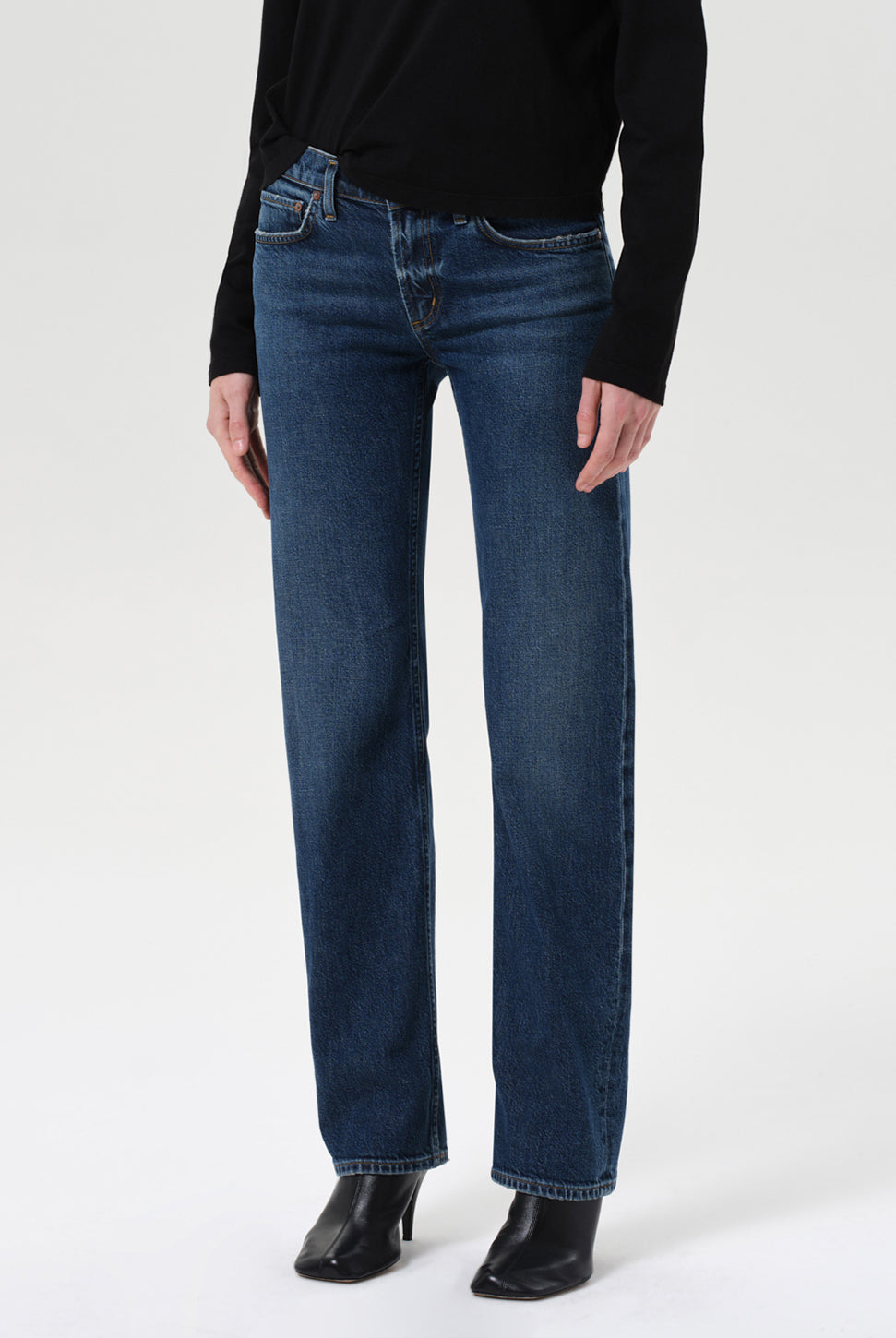 AGOLDE is a premium denim label dedicated to setting the standard for advanced, directional denim. Continually seeking inspiration from the classics, this Los Angeles based design collective sets out to recreate clothing with a fresh reinterpretation in mind. An AGOLDE silhouette offers the authenticity and rarity found in discovering the perfect vintage pair.
