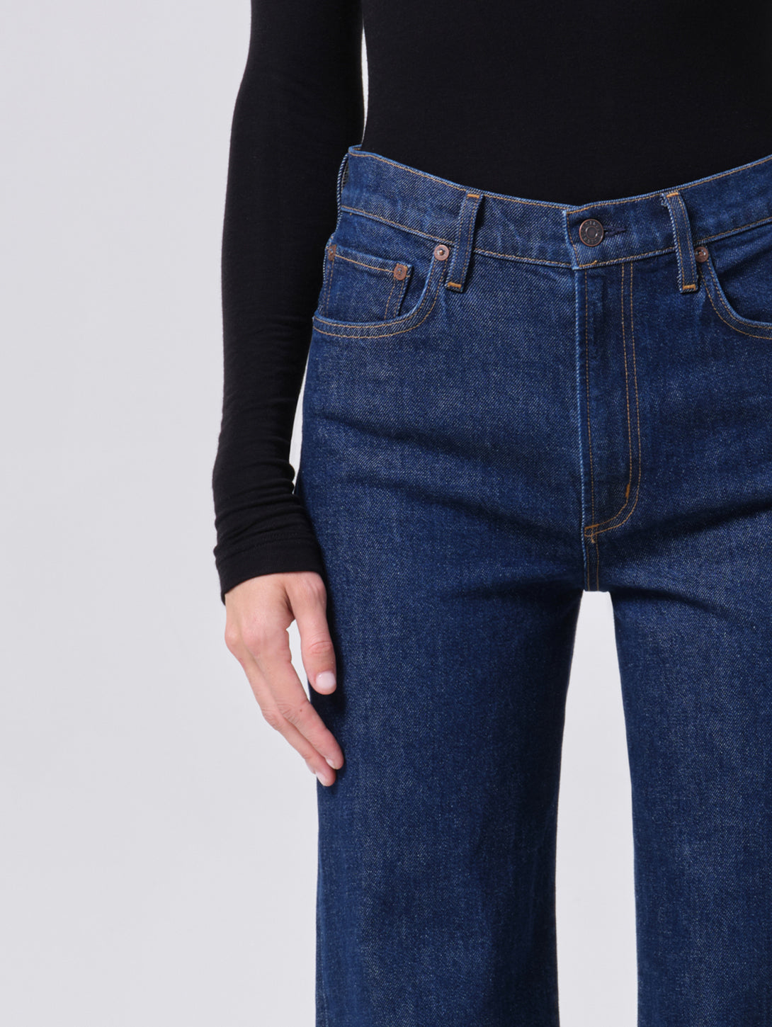 The Harper is crafted from regenerative cotton with just the right amount of stretch for comfort. Featuring a relaxed mid-rise fit, it has a flattering square top block and a straight leg. Made in dark, clean rinse indigo denim, it offers a deep, rich color with a smooth, polished finish. A versatile piece that pairs effortlessly with everything from casual tees to elevated tops.