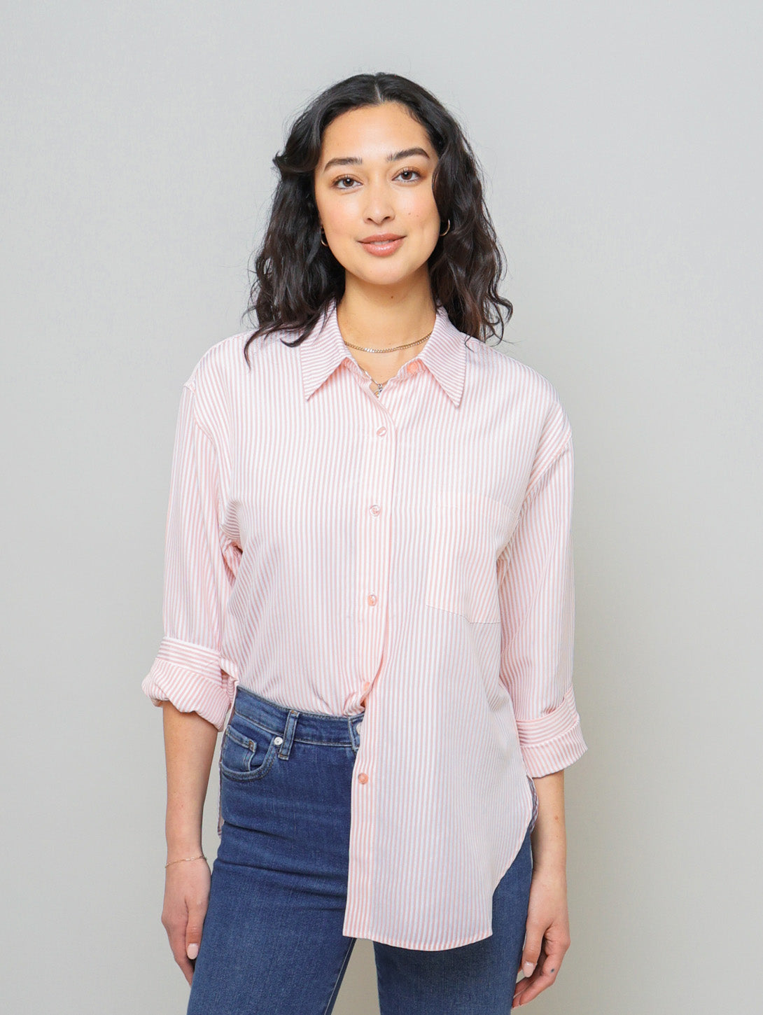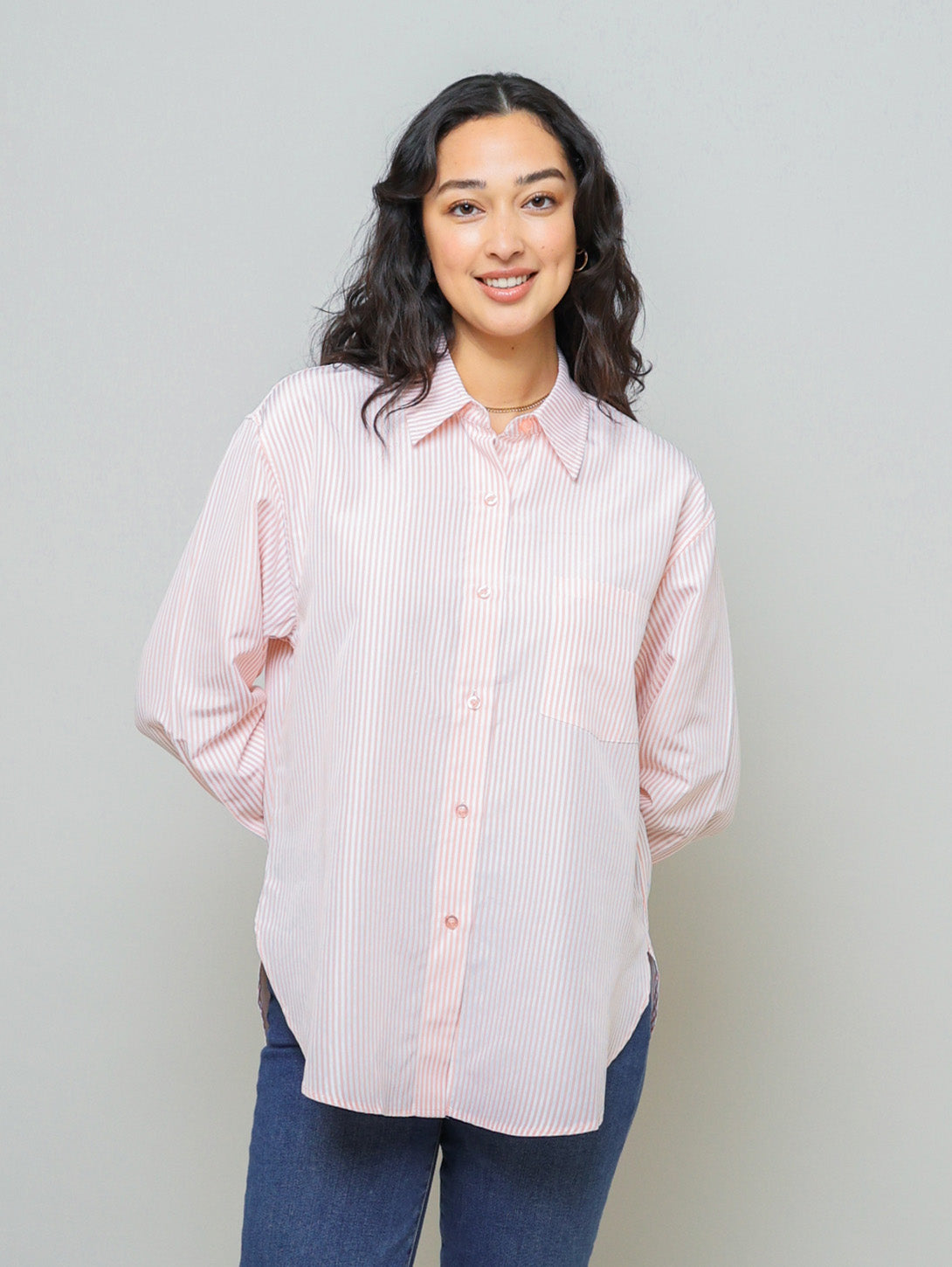Experience effortless style with the Amalfi Shirt in Mediterranean Blue. This relaxed-fit, long-sleeve collared shirt features a distinctive stripe design and convenient front button closure. Elevate your wardrobe with this versatile essential that captures the essence of coastal elegance.