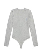 The Polo Ralph Lauren Women's Club Cotton Long-Sleeve Thong Bodysuit is a versatile and comfortable staple for any wardrobe. Crafted from soft, breathable cotton with a stretchy fit, it ensures all-day comfort. The bodysuit features a classic crew neckline and long sleeves, complemented by a thong back that provides a smooth, seamless appearance under clothing. It is detailed with the signature embroidered Pony on the left chest and is machine washable for easy care.
