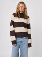 Bold and effortlessly cool, The Edison Mock Neck brings modern edge to a cozy essential. Designed with oversized horizontal stripes in rich chocolate brown and soft beige, this relaxed-fit sweater features a high mock neckline and ribbed finishes for a structured yet slouchy silhouette. A standout layer for transitional days.