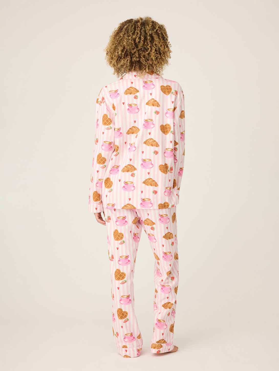 Brunch Club Breakfast Print Flannel PJ Set - Pink