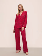 Gisele Printed Long PJ Set - Nutcracker Holly Red