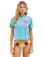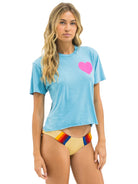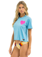 Heart Print Boyfriend Tee - Aquamarine/ Neon Pink