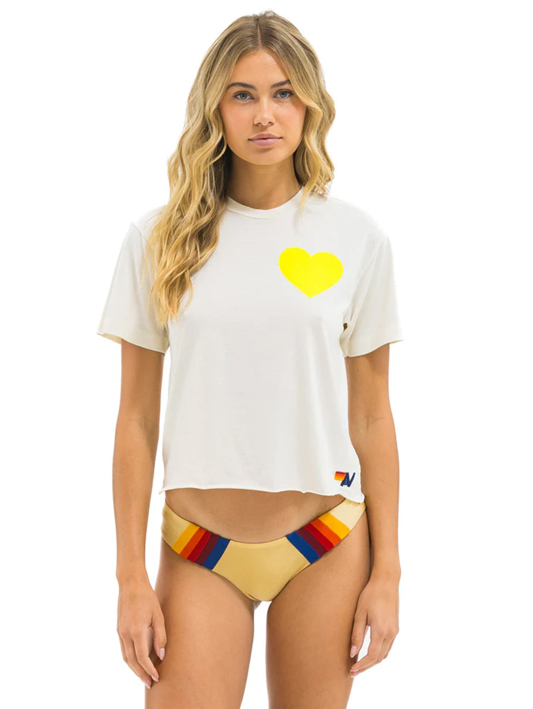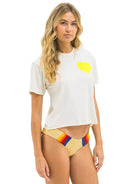 Heart Print Boyfriend Tee - Vintage Whit/Neon Pink