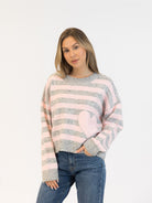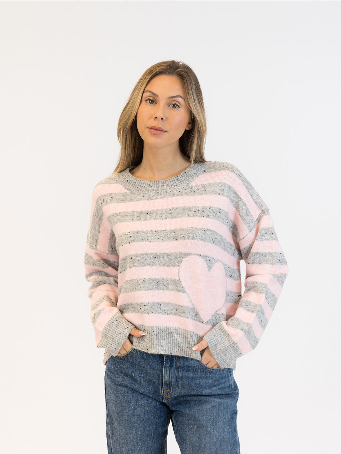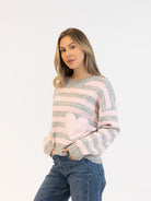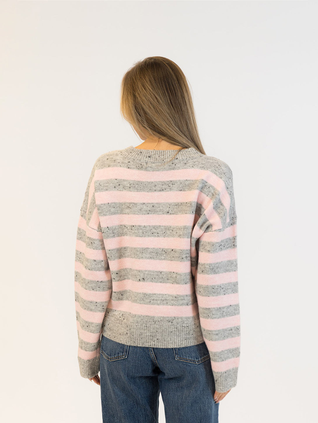 Jessie Fleck Crewneck Pullover - Light Grey/Pink Stripe