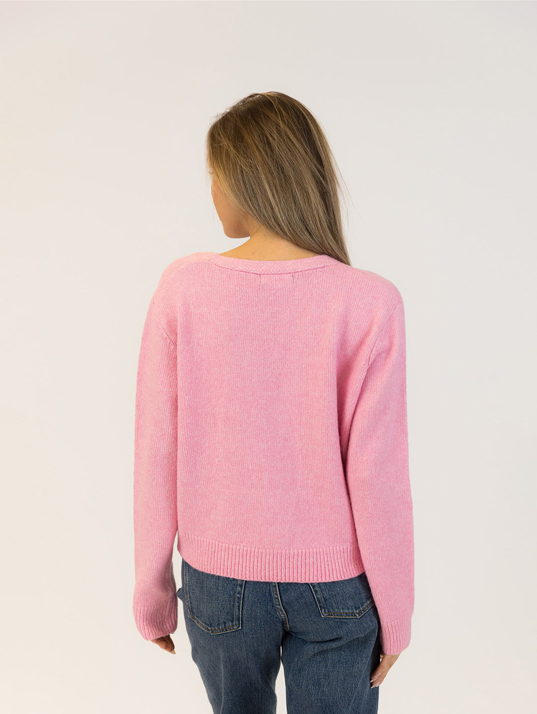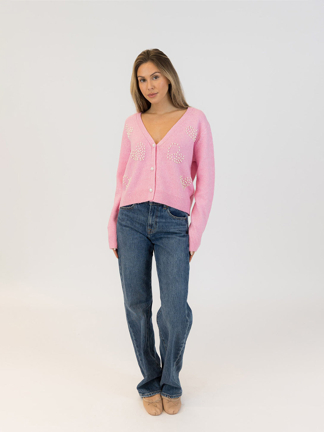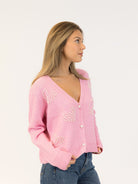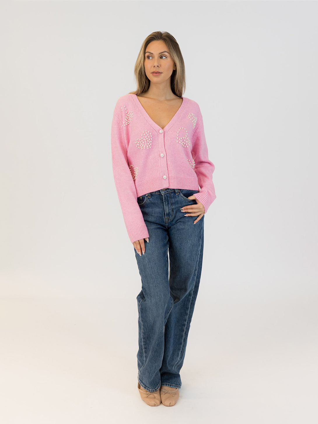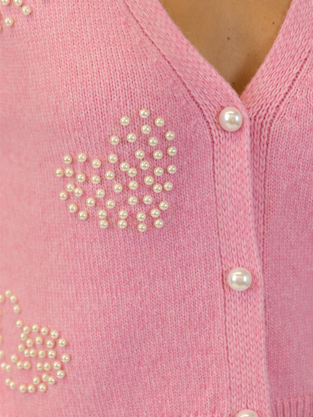 This cardigan features a charming heart design, offering a sweet and playful touch to your wardrobe. Its soft and cozy fabric ensures comfort, while the heart pattern adds a fun, stylish element to your look, perfect for casual occasions.