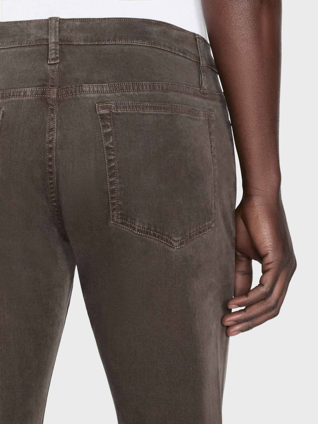 A FRAME signature jean, this style is designed with a classic 5-pocket construction, comfortable mid rise, flattering straight leg, and tapered slim fit at the leg opening. Crafted from smooth super stretch denim.