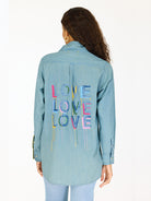 The Mia Shirt Love is a collectors edition in a lightweight denim with Kerri's 'Love on Repeat' artwork printed on the back. Super soft in the lightweight chambray.