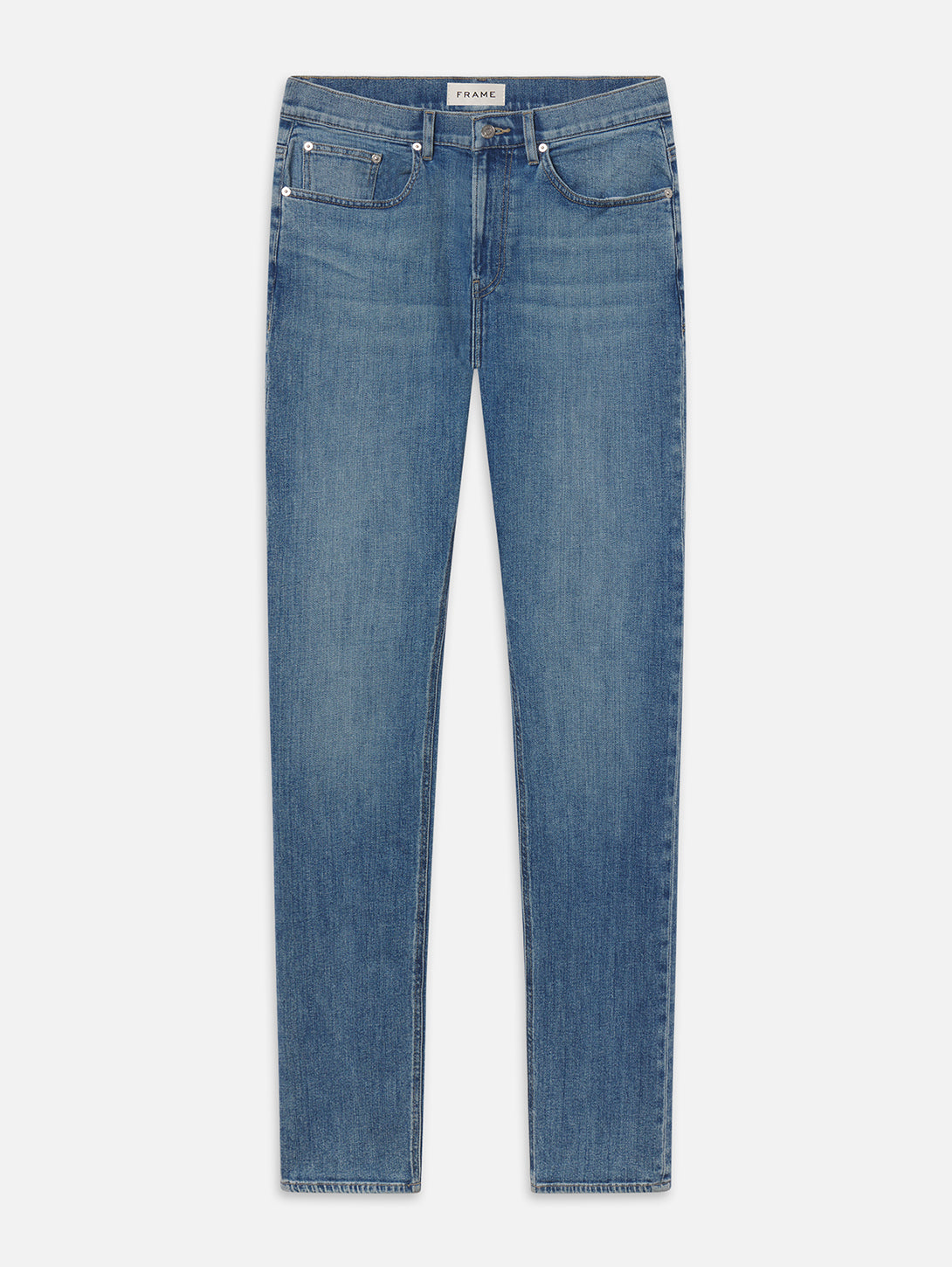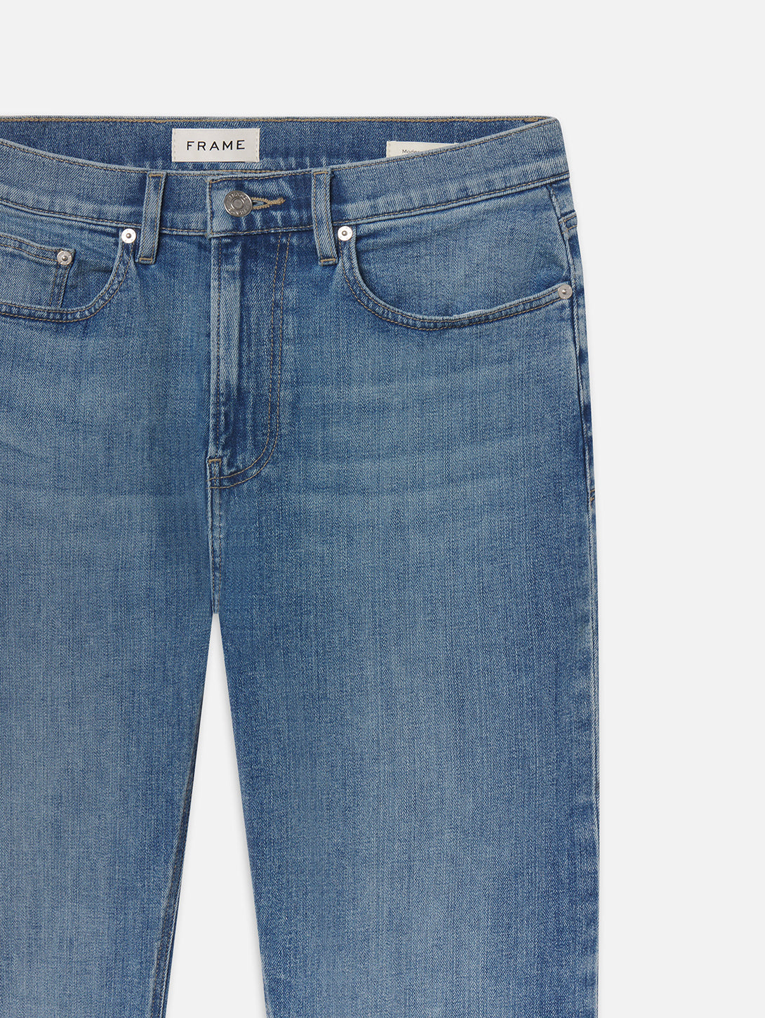 Our mid-rise, straight-leg silhouette is cut from a stretch-cotton denim. This 5-pocket pair easily achieves a smart, casual look in any wash.