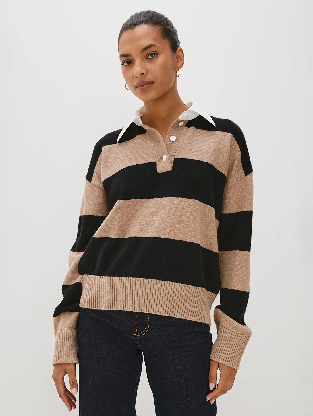 The Paxton is a henley sweater made from a sumptuous cotton-cashmere blend. It features a relaxed fit, heritage striping, and a contrast cotton poplin collar.