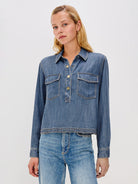 The Ports Shirt is made from soft, lightweight denim with a cropped fit and half placket. Snap-front closures and dual chest pockets complete the look.