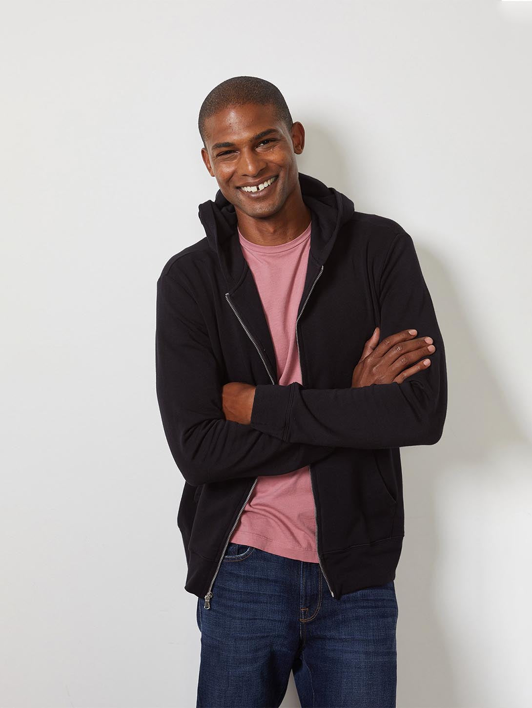 This zip-up hoodie is crafted from medium-weight luxe fleece with an extra cozy brushed interior, making it the ultimate weekend layer for workout or lounge. Designed to give a non-bulky fit.