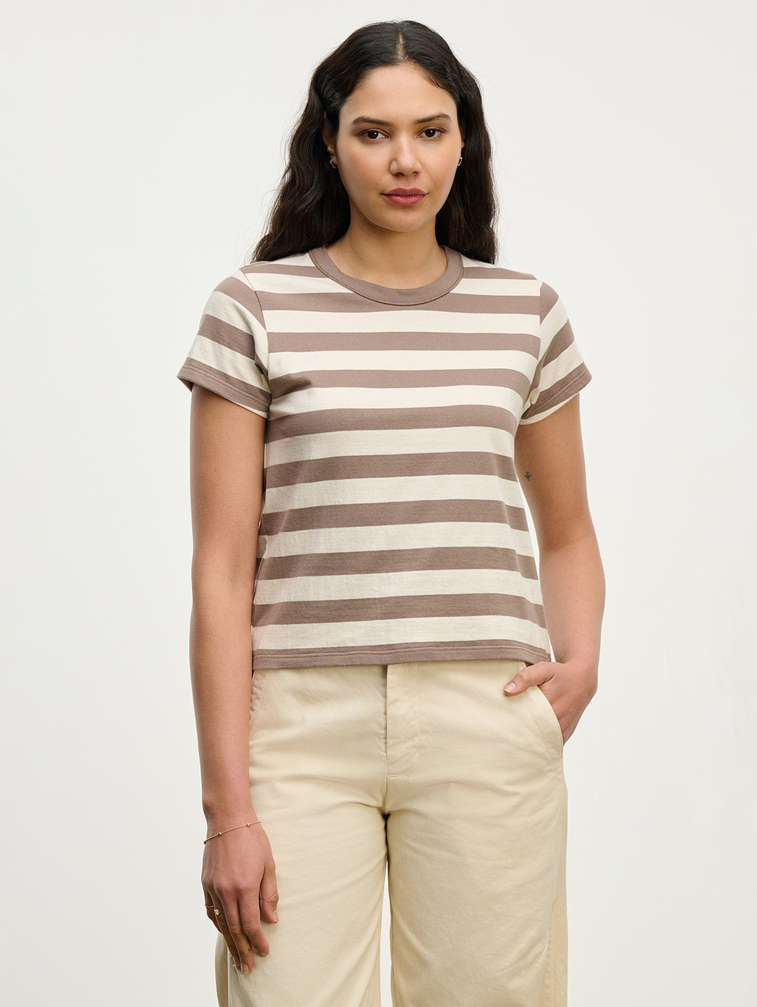 Short Sleeve Anais Crew Stripe Tee - Mocha Stripe
