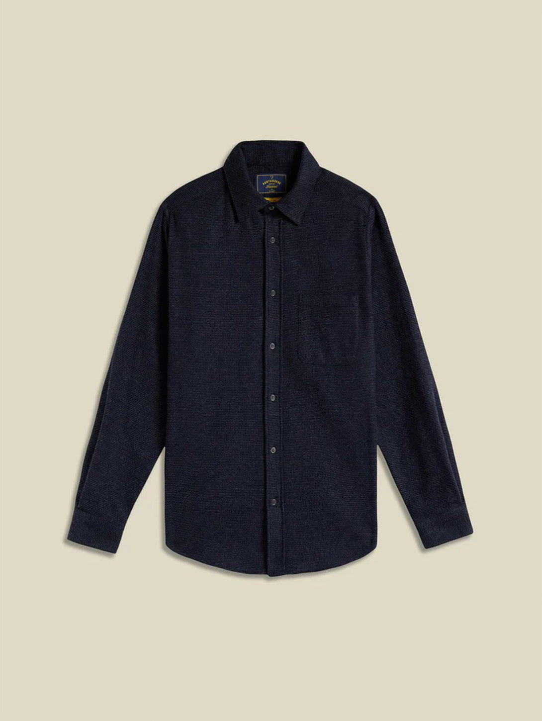 This grey Sounds Shirt features a classic long-sleeve design with a structured collar and a front button closure, offering a refined yet versatile look. Its tailored fit and quality construction make it suitable for professional settings or smart-casual occasions, ensuring both comfort and style throughout the day.