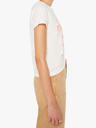 Explosive fun. A soft crewneck with a slim fit for a vintage look and feel. Made from 100% supima cotton in white, The Boxy Goodie Goodie in Lil Firecracker features a faded peach text graphic on the front.