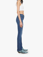 Star power. A mid-rise straight leg with a zip fly, long 31-inch inseam and a clean hem. Made from denim with a touch of stretch, Shine On is a dark blue with whiskering and fading at the knees.
