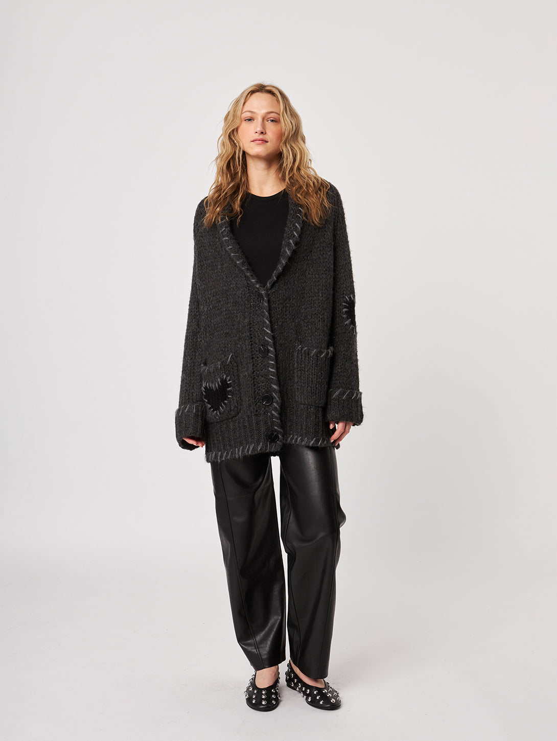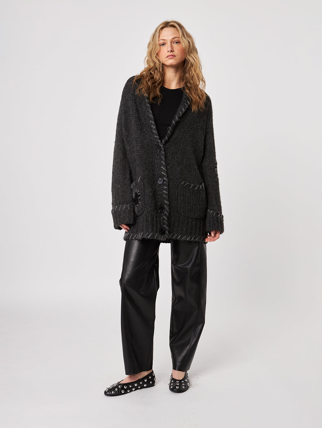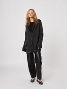 Grunge meets comfort in The Tripp Cardigan, a slouchy, oversized layer with a lived-in edge. Crafted from a soft, textured knit in washed black, it features raw-edge details, front patch pockets, and a button-down front. Its effortlessly undone vibe makes it the perfect throw-on for cooler days or laid-back layering.