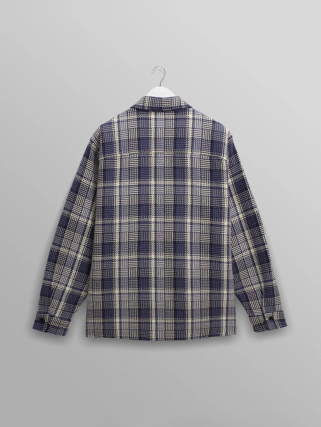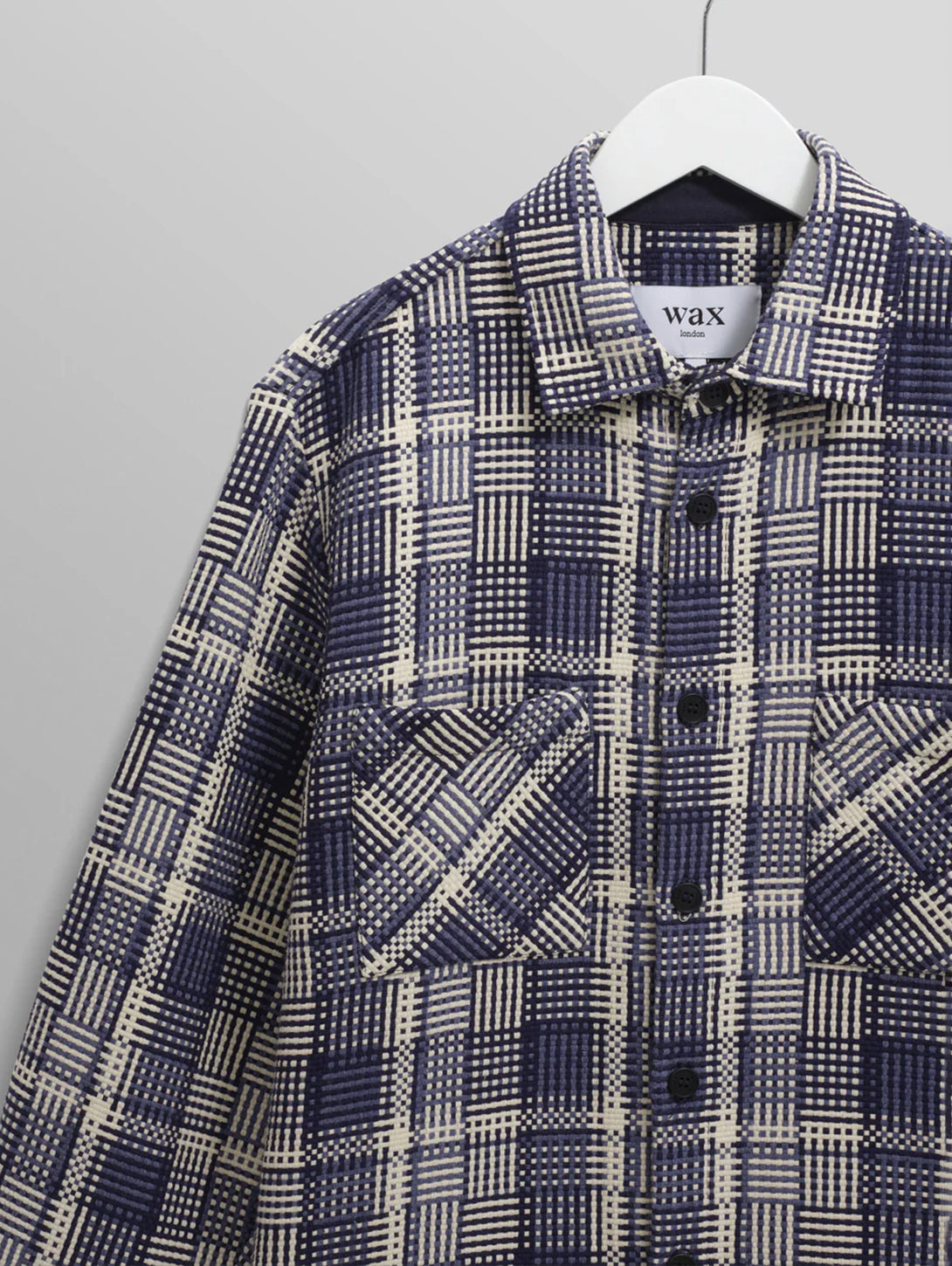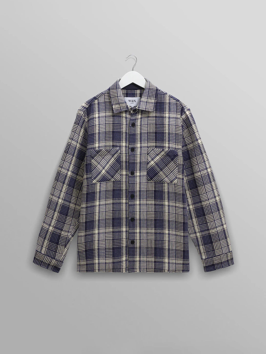 The Wax signature piece. The Whiting, our year-round staple, returns in a new large scale blue knitted brushed wool blend check design with hues of burgundy, brown, and grey. It features environmentally-friendly Corozo nut buttons and front patch pockets. Is it a shirt? Is it a mid-layer? Is it a jacket? It's all of those things and much, much more.