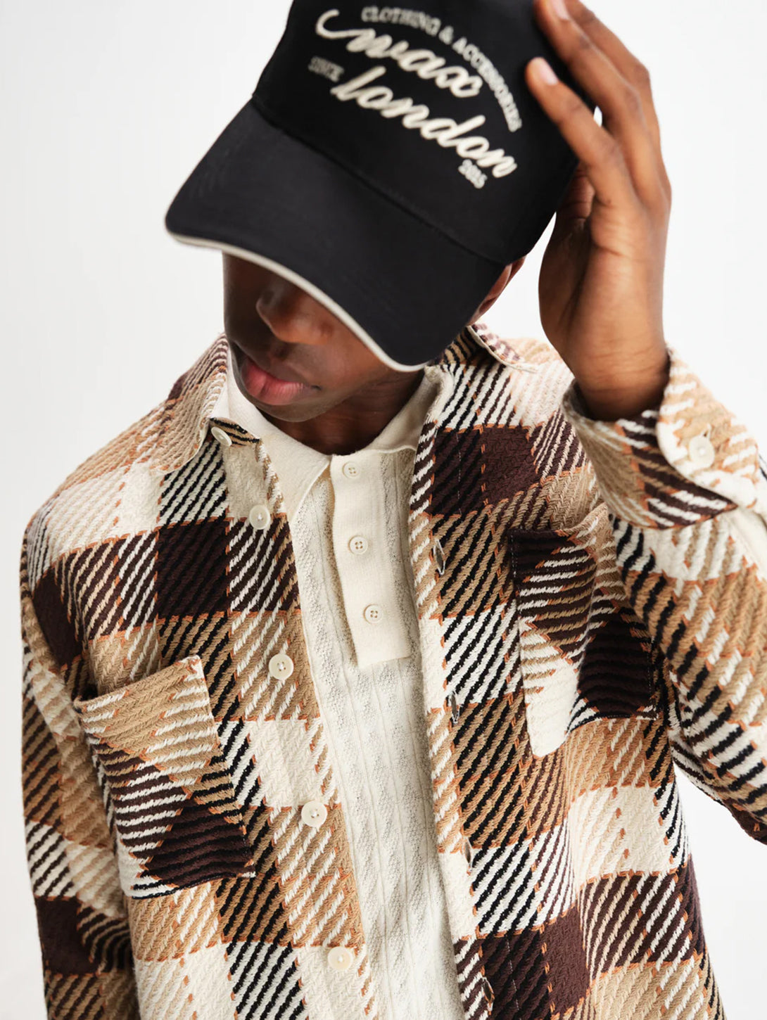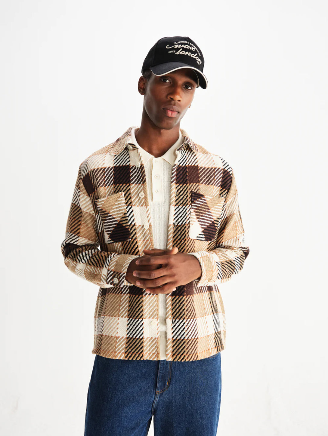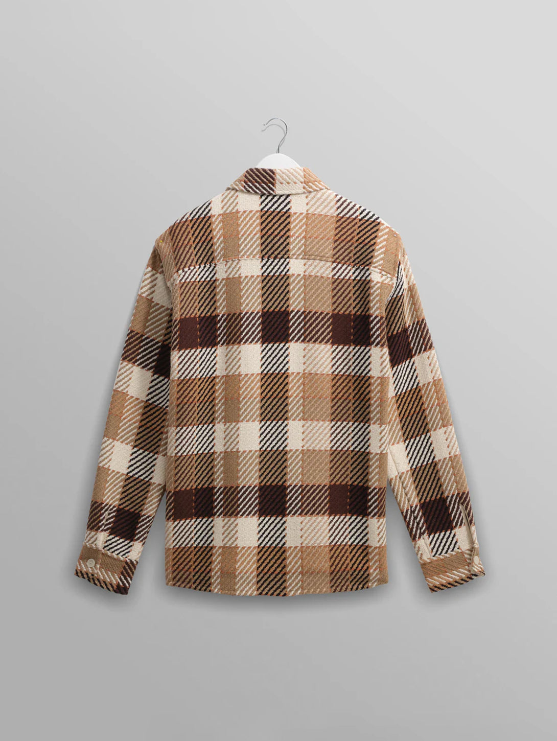 The Wax signature piece. The Whiting, our year-round staple, returns in a new large scale blue knitted brushed wool blend check design with hues of burgundy, brown, and grey. It features environmentally-friendly Corozo nut buttons and front patch pockets. Is it a shirt? Is it a mid-layer? Is it a jacket? It's all of those things and much, much more.