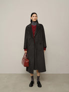 A full-length wool coat in dramatic extreme gray. Cut for a structured, slightly oversized fit with clean finishing and practical warmth—an outerwear statement piece.