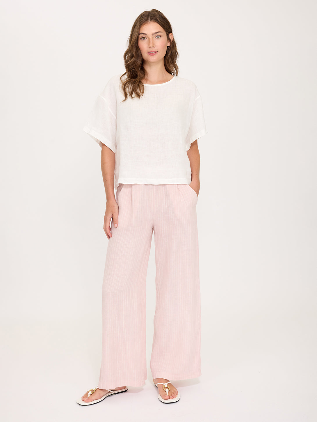Linen Loose Tops - White Panna