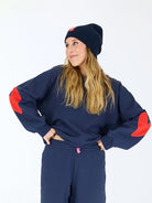 Kerri's Benton Imperfect Heart Patch Sweatshirt is crafted from our softest cotton fleece, offering a loose, comfortable fit. Contrast heart elbows and raglan sleeves, adds a bit of fun to your everyday sweat set look.
