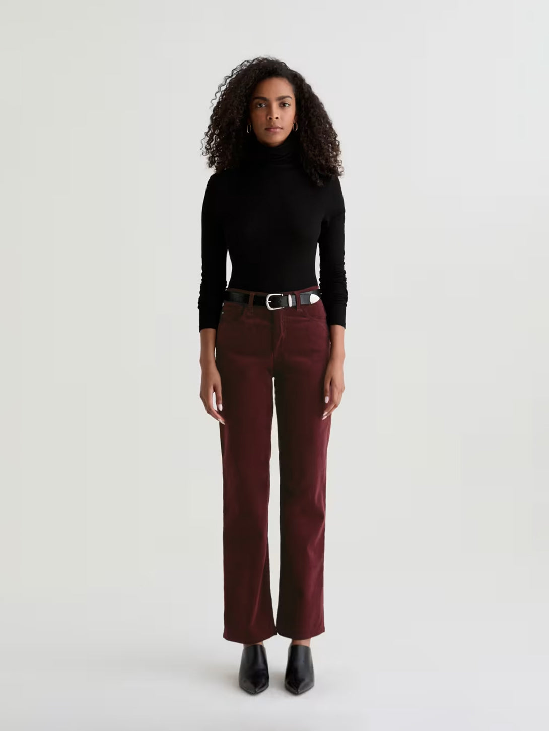 Brinley Mid Rise Straight Corduroy Pant - Winery