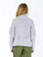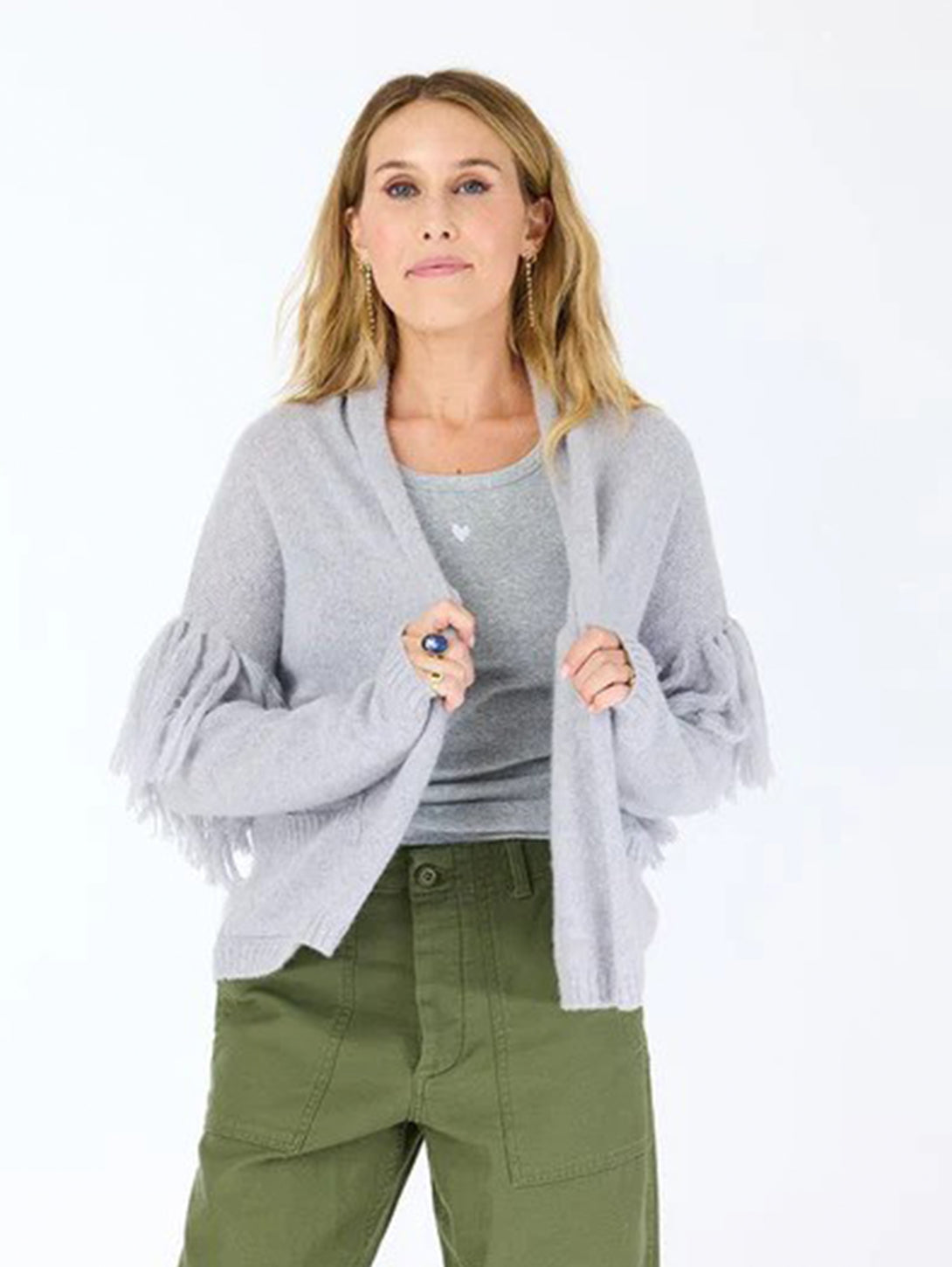 Introducing The Cali Beau-Lero knit sweater. This effortlessly chic, open front cardigan is adorned with fringe on mid sleeve and Kerri's iconic Drippy Heart artwork on the back. Wear casual with denim or army trousers, or dress it back to the Athena Skirt. This will be your Holiday party masterpiece.