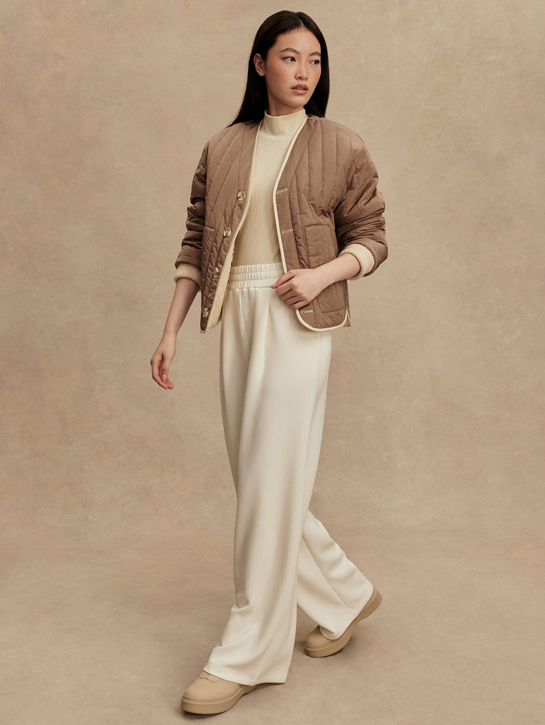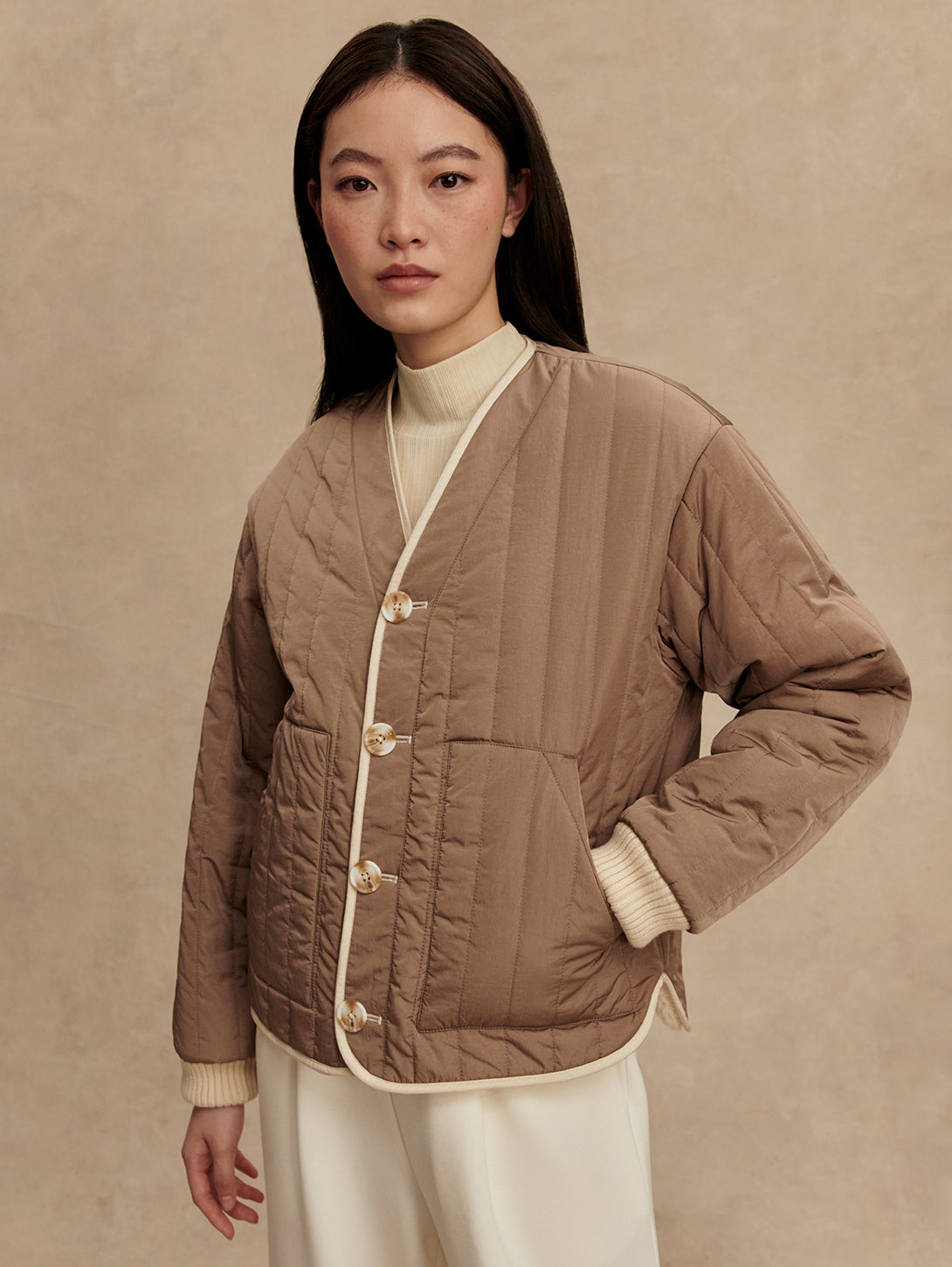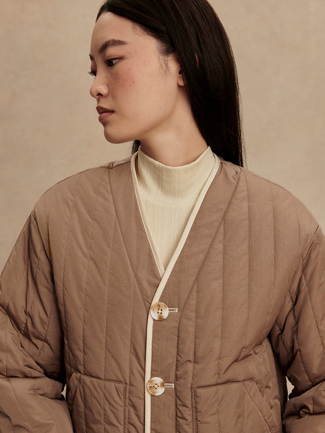 Drew Revers Quilt Jacket - Sandshell /Ash Taupe