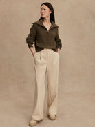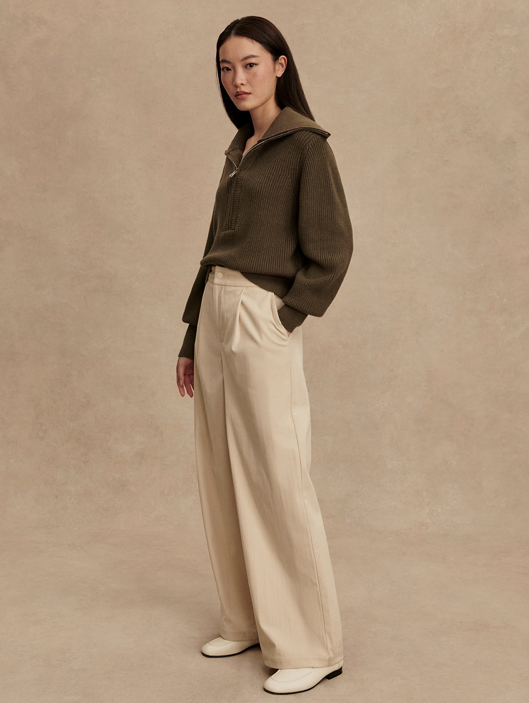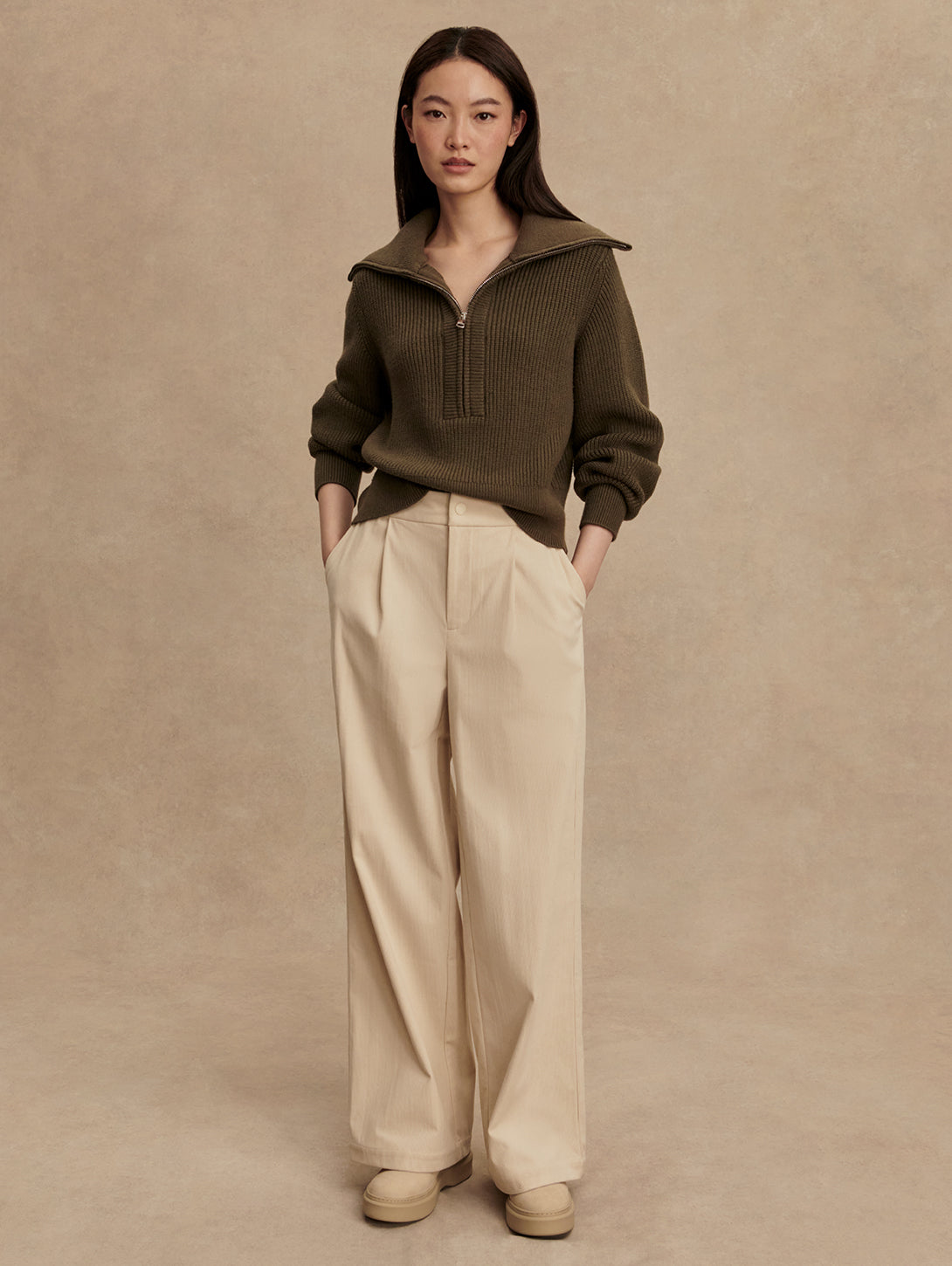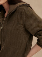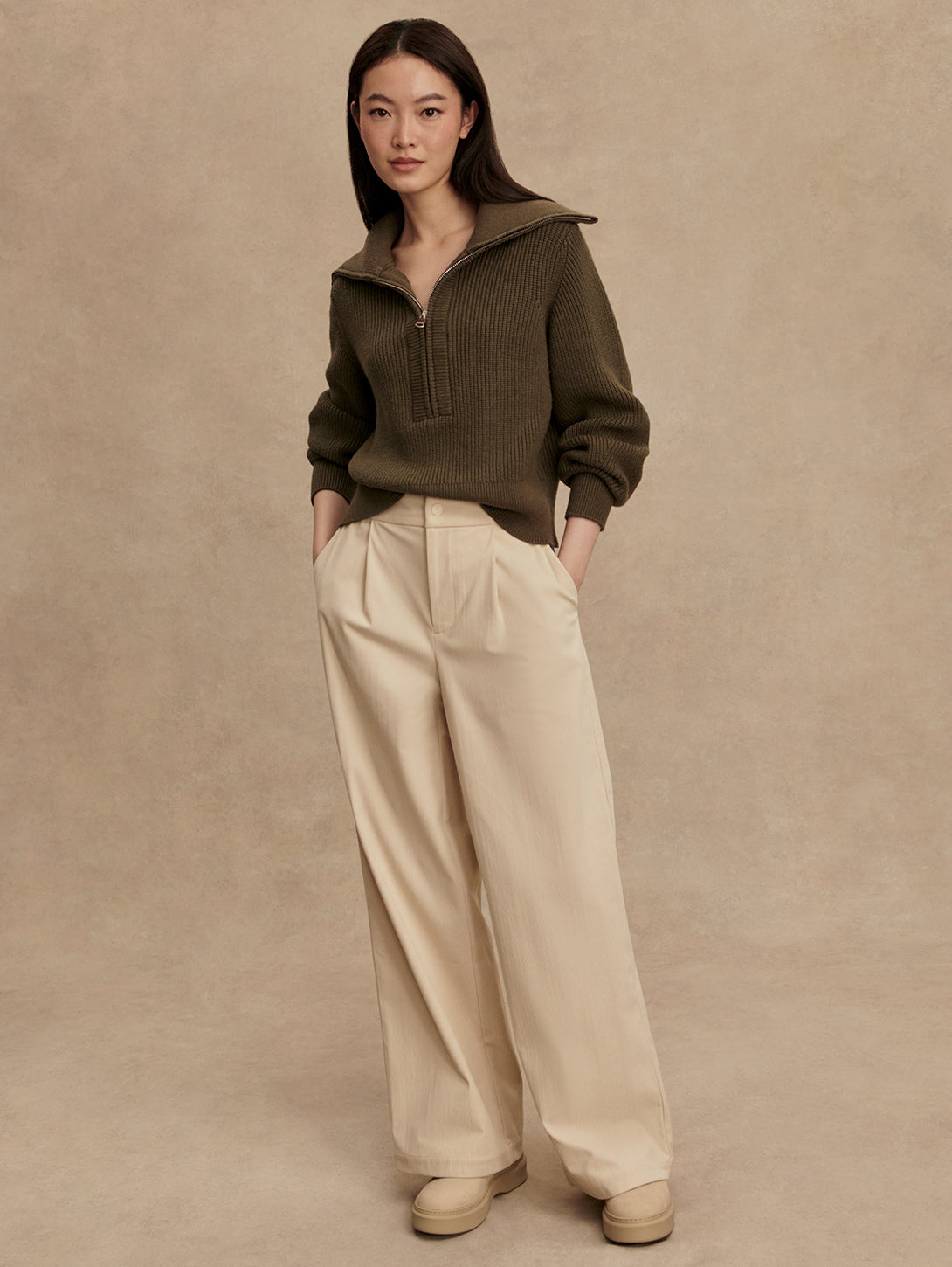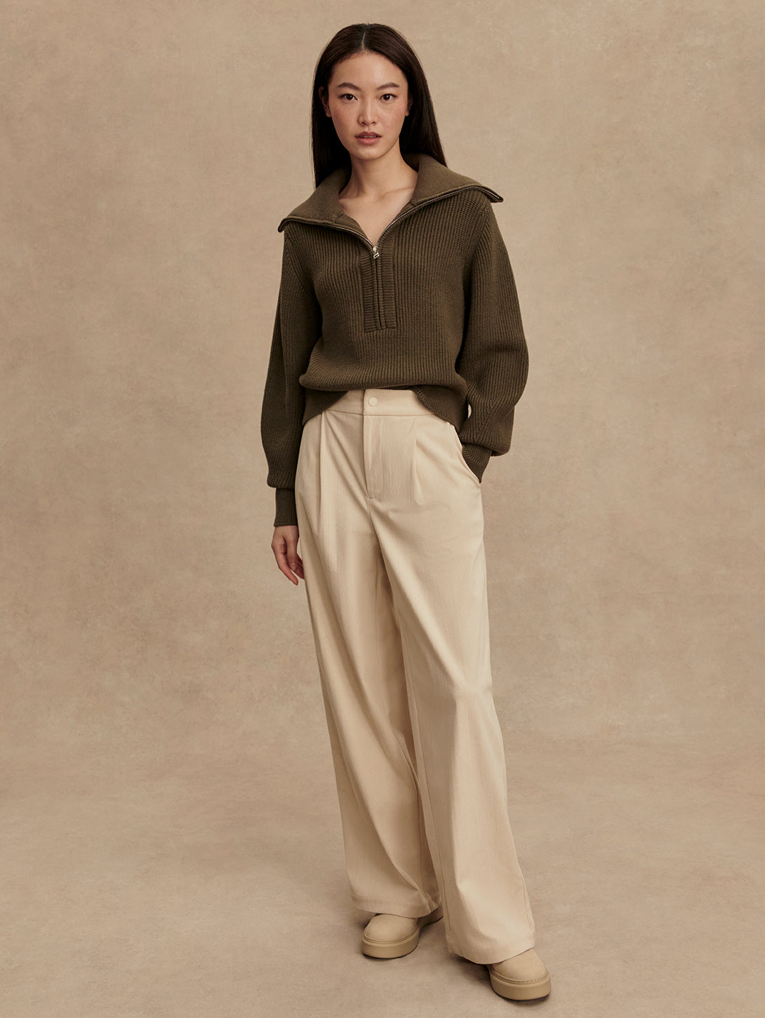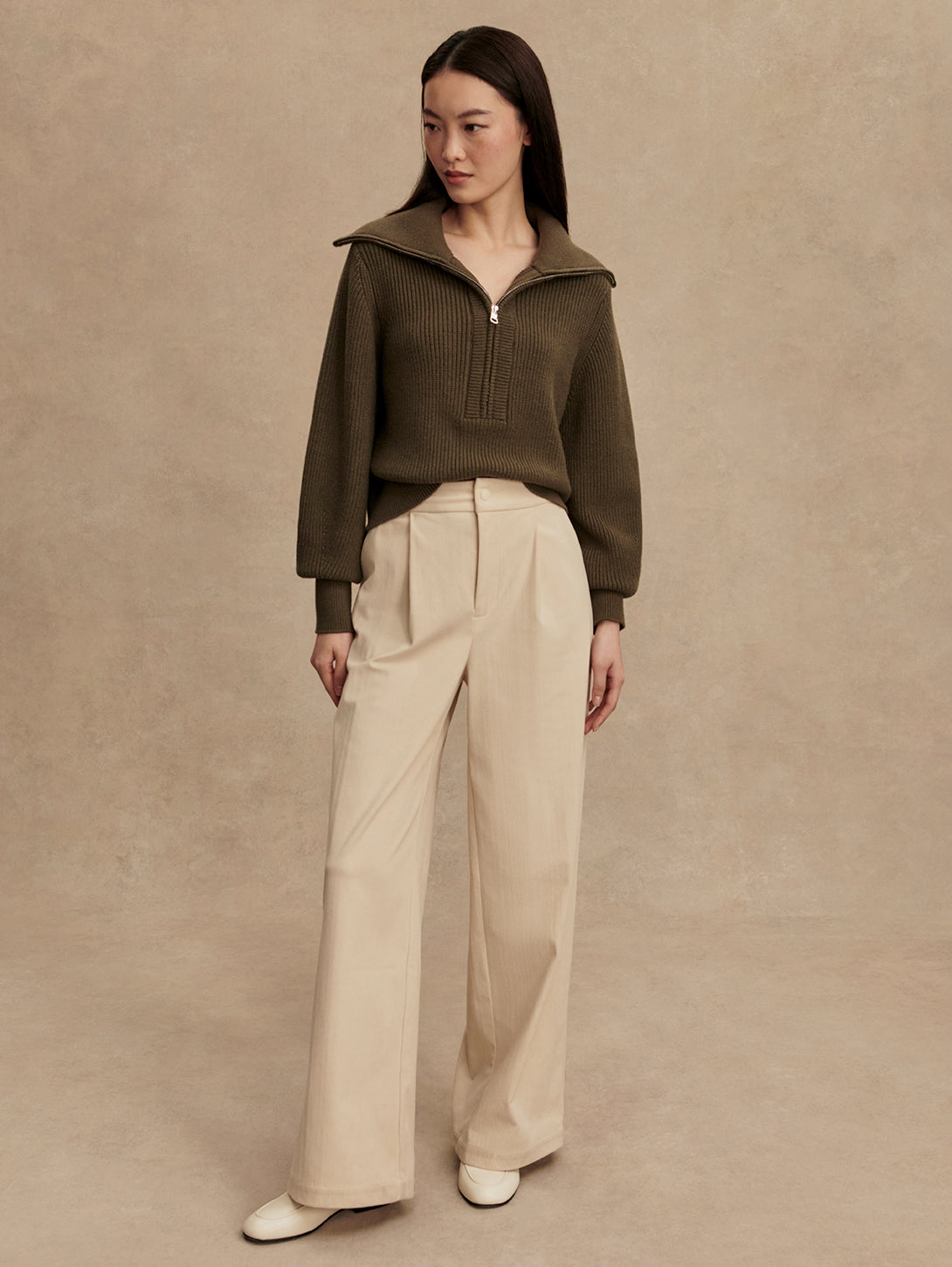 The Maura is a half-zip version of the Enrico jacket, crafted from the same mid-gauge Soft Viscose yarn. Soft to the touch and versatile for all-season layering, the Maura features fashioned armhole detailing and a statement turn-back collar.