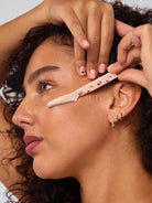 - Hold the dermaplaner at a 45-degree angle to your skin.