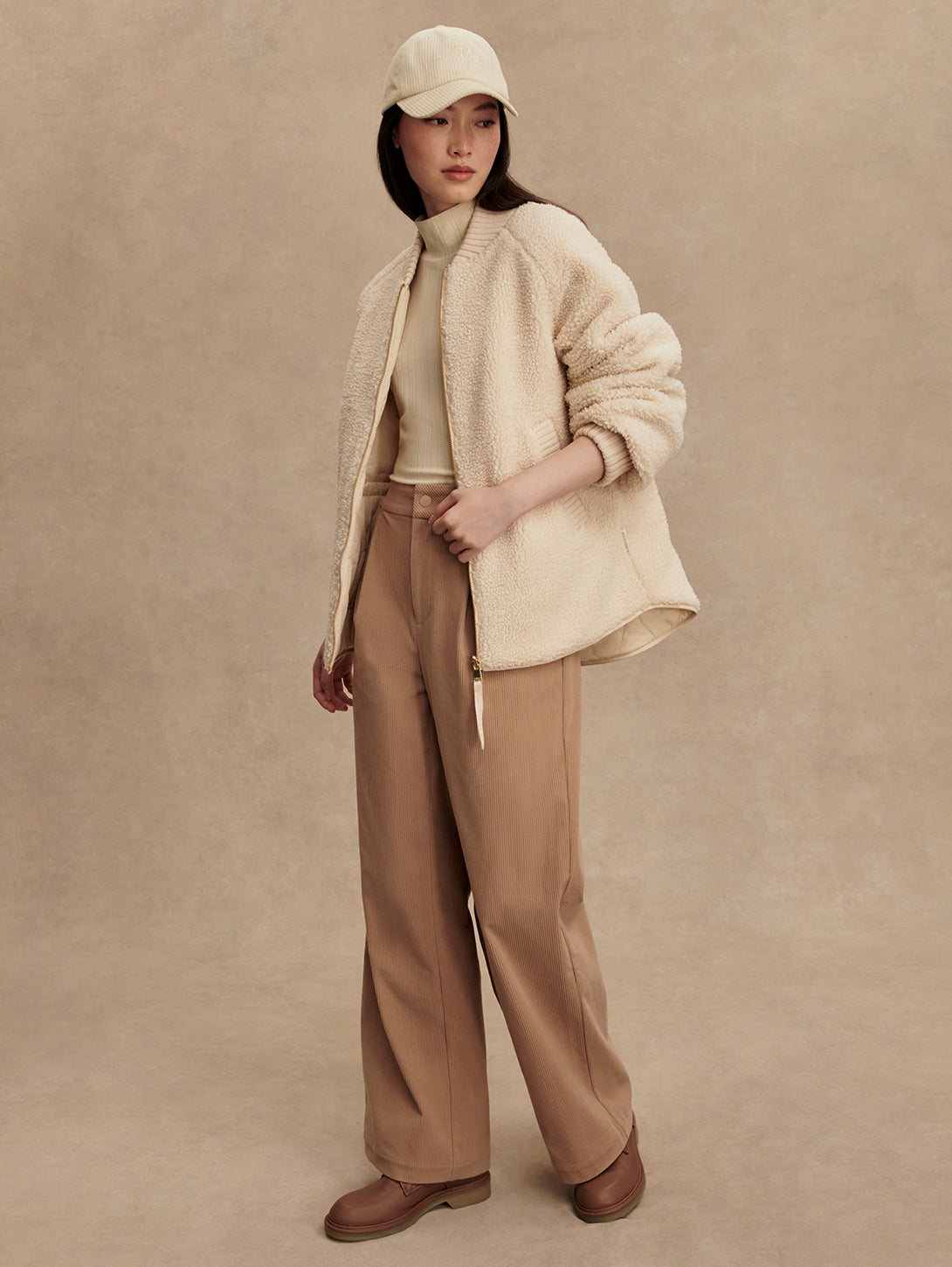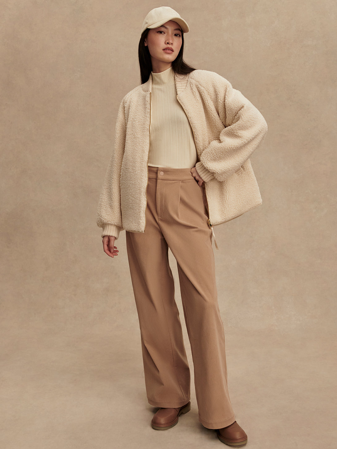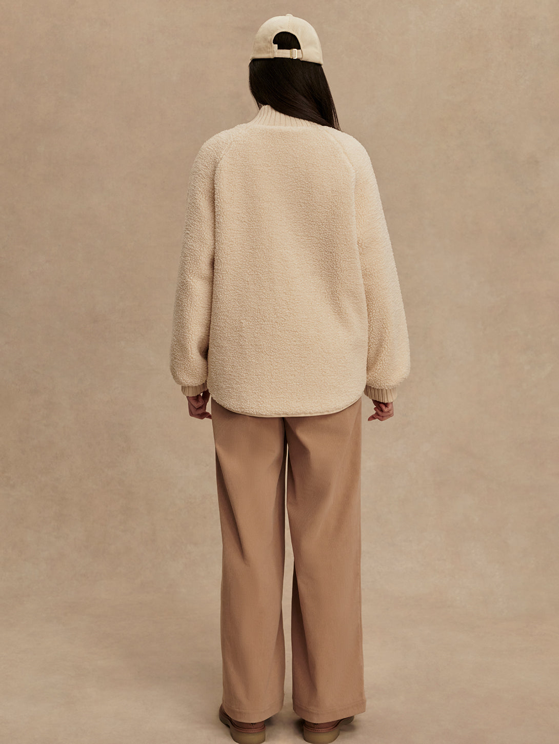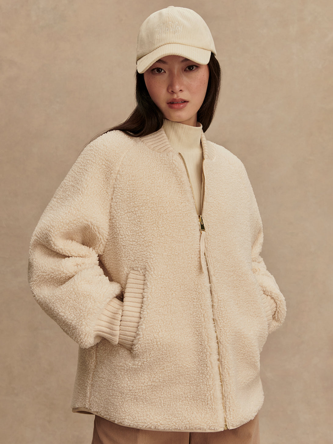 The Serina is made in a tight and curly Bouclé Sherpa with welt pockets on one side, and a Crinkle Shell fabric in an onion quilt design and patch pockets on the other. Both sides of this reversible, throw-on-and-go jacket show the chunky knitted cuffs and collar. Cut to a boxy bomber-shape with a curved hem, the Serina is perfect for cold-weather layering.
