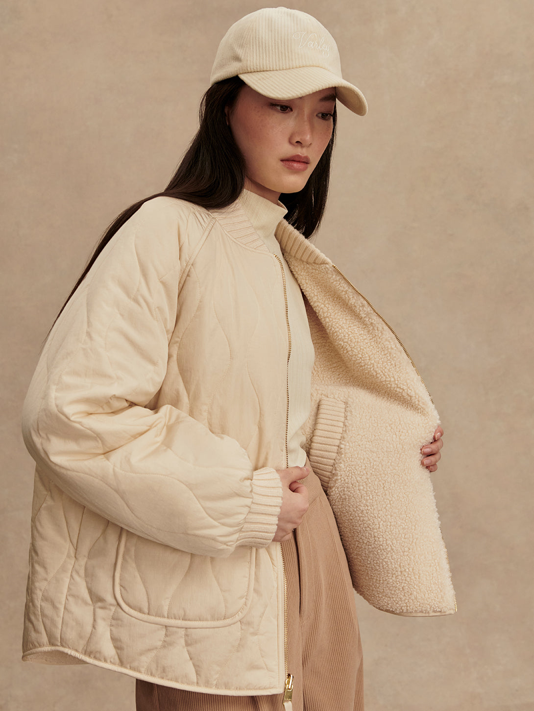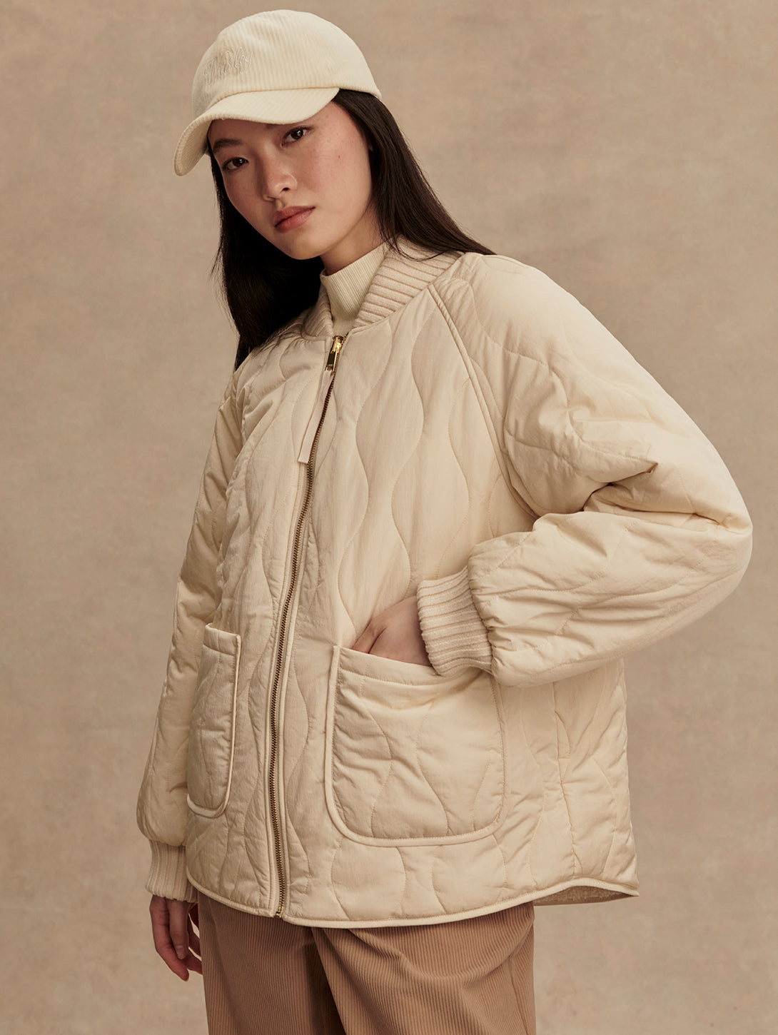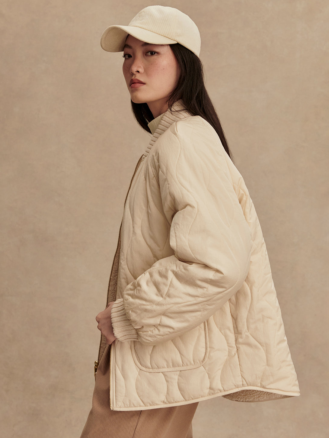 Serina Revers Quilt Jacket - Sandshell