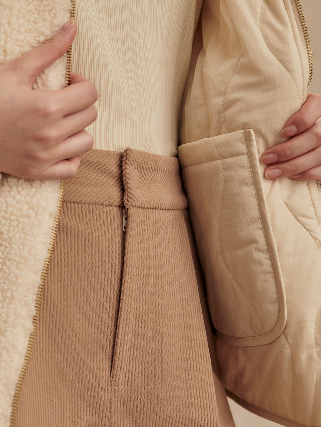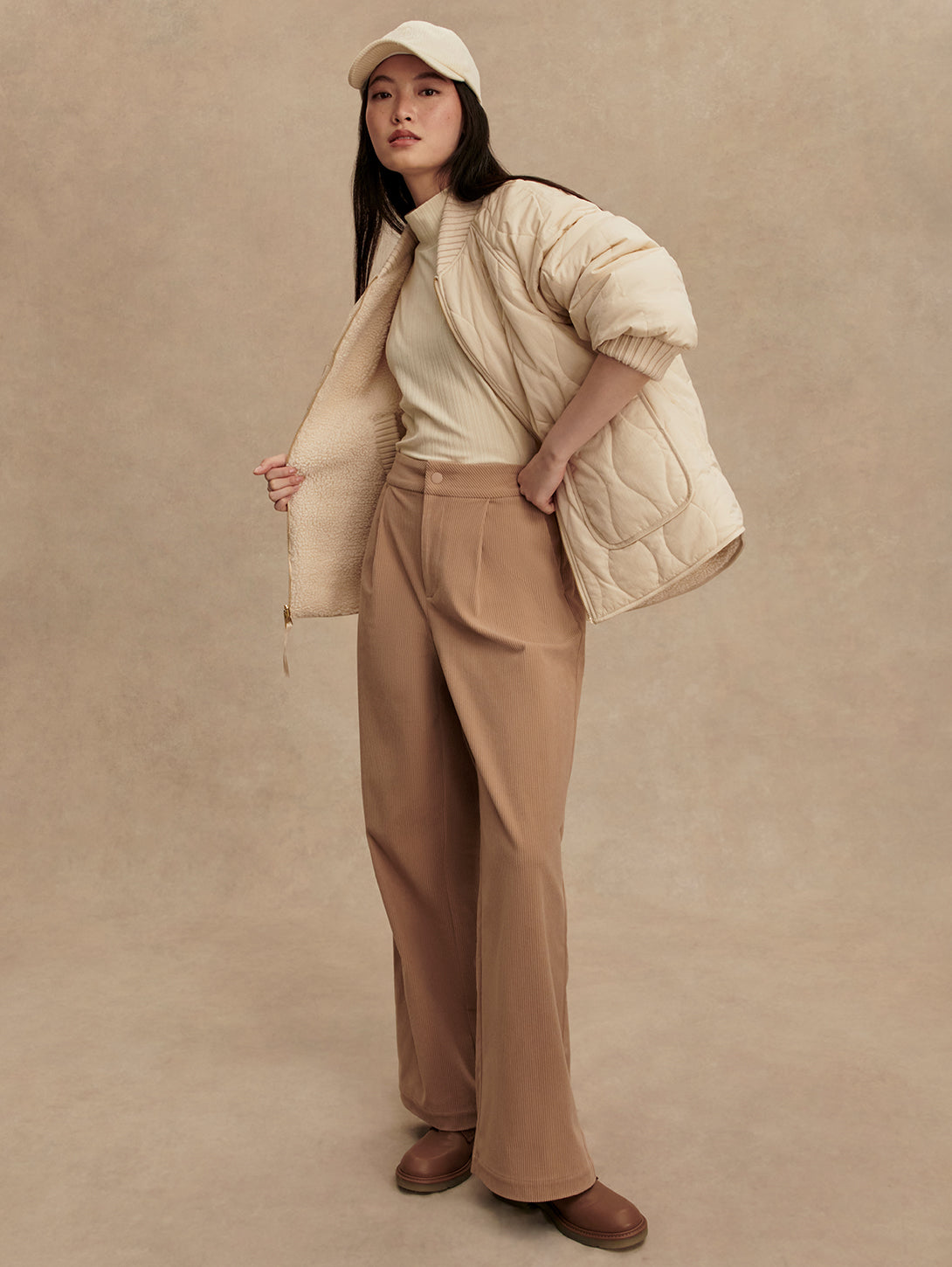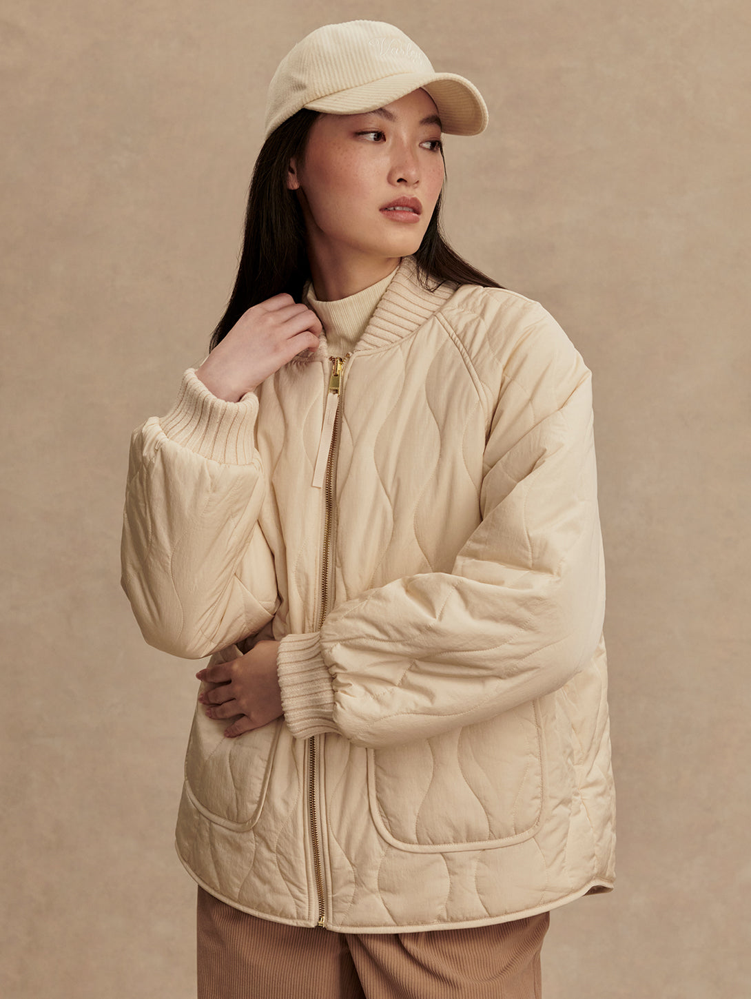 Serina Revers Quilt Jacket - Sandshell
