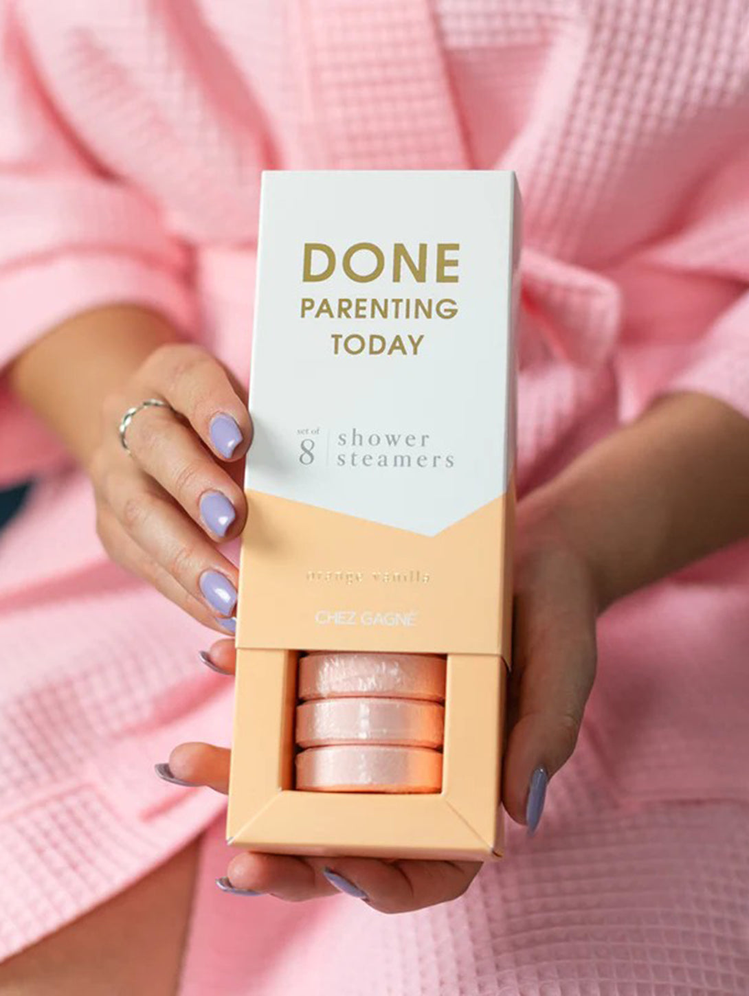 Need some peace and quiet? We get that. Get your chill on with our aromatherapy shower steamers. Let the scent of orange and vanilla rush over you like your kiddos pouch over their fresh white shirt and take a few minutes for yourself. Because you deserve it. Obviously.