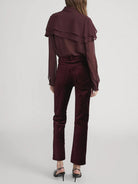 Our classic Sleek Straight silhouette, reimagined in luxe stretch velveteen with a rich burgundy hue. This pant is fitted through the hip and thigh, extending into a slim leg with an ankle-length inseam.