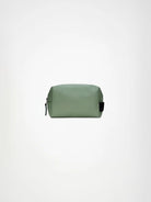 Wash Bag Small is cut in Rains’ signature waterproof PU fabric, engineered for carrying strength, durability, and a smooth feel.