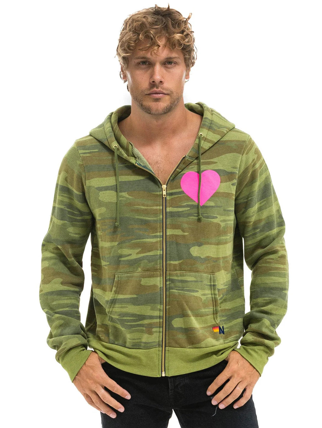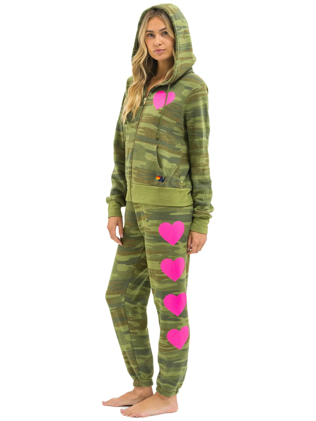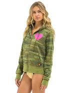 Heart 2 Zip Hoodie - Camo/ Neon Pink