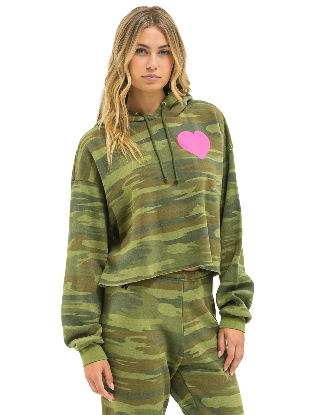 Heart 2 Zip Hoodie - Camo/ Neon Pink