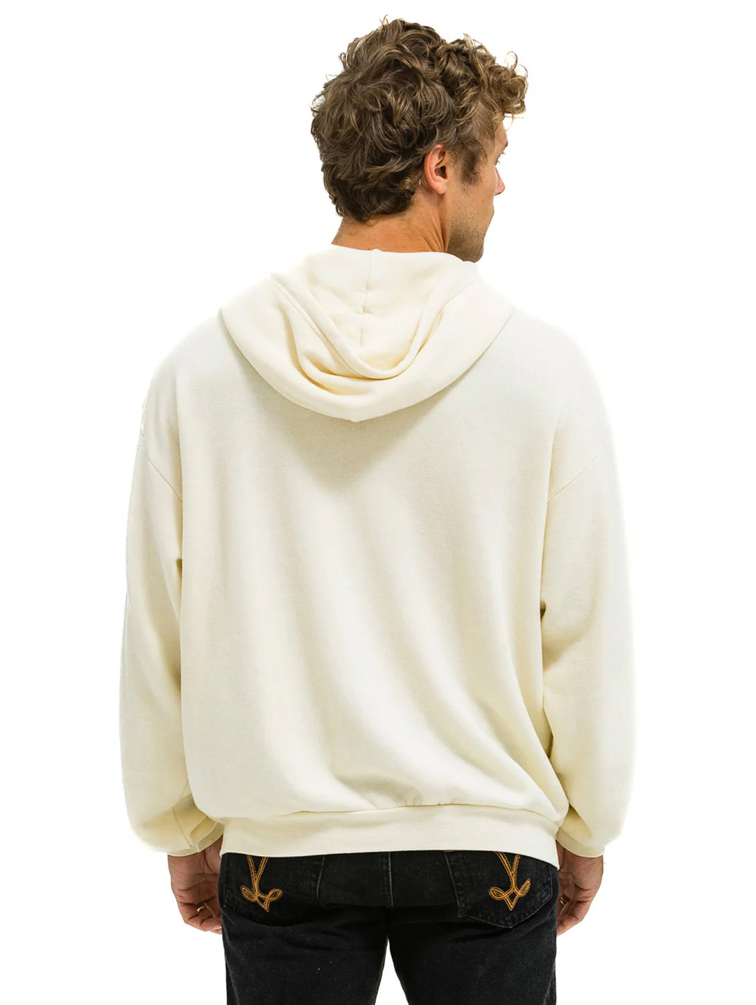 The most comfortable hoodie you'll ever own. Our single needle stitch work gives each garment a unique, one of a kind effect. All of our products go through an intense breaking-down process that gives them a vintage feel you'll love because it's broken in from day one of wearing it. You're going to live in this hoodie.