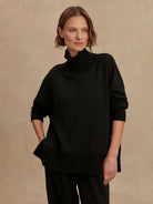 This essential sweatshirt in our DoubleSoft® fabric boasts an oversized fit and modern high-neck design. Complete with knitted cuffs, neck, and hem, it includes deep side splits for enhanced movement and style.