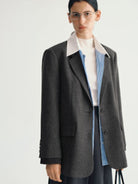 Tailored with precision, this dark gray blazer delivers warmth and polish. Features include structured shoulders and a clean, classic cut.
