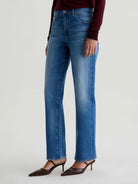 Brinley is a mid-rise straight jean crafted from comfort stretch denim. Finished with busted hems and an AG-ed™ wash that replicates 13 years of natural wear, this style offers a broken-in look with everyday comfort. Crafted from premium denim sourced from Italy’s Candiani Mill.