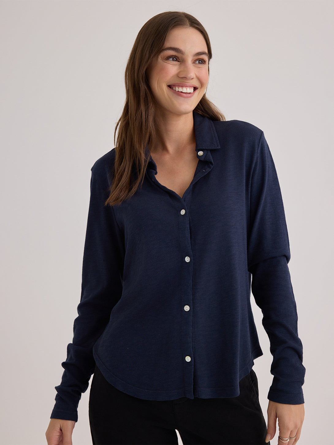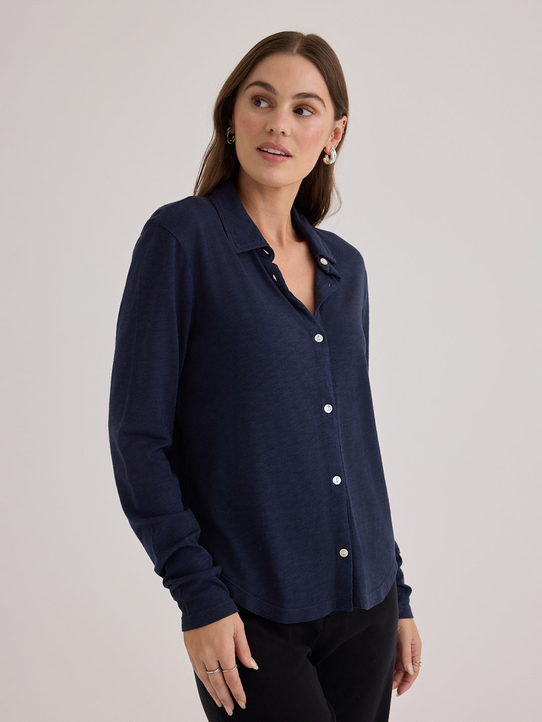Slub knit fully button front w/polo collar is the most versatile addition to your wardrobe. Comfortable & easy, always the right choice for any occasion.