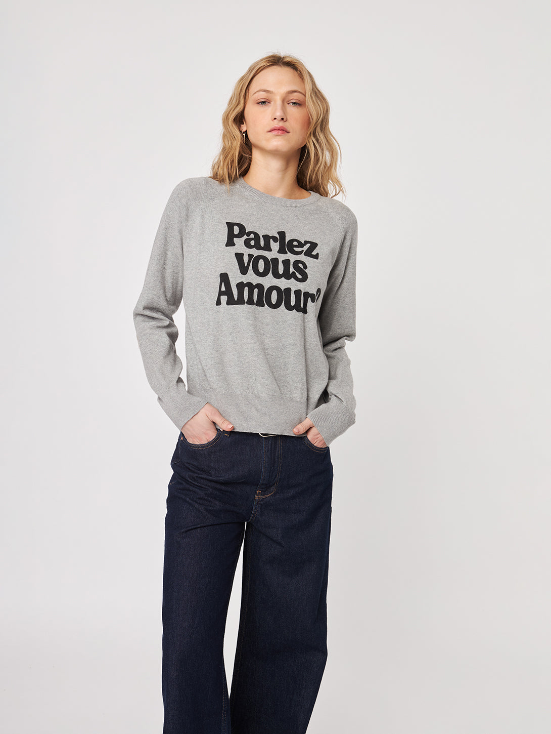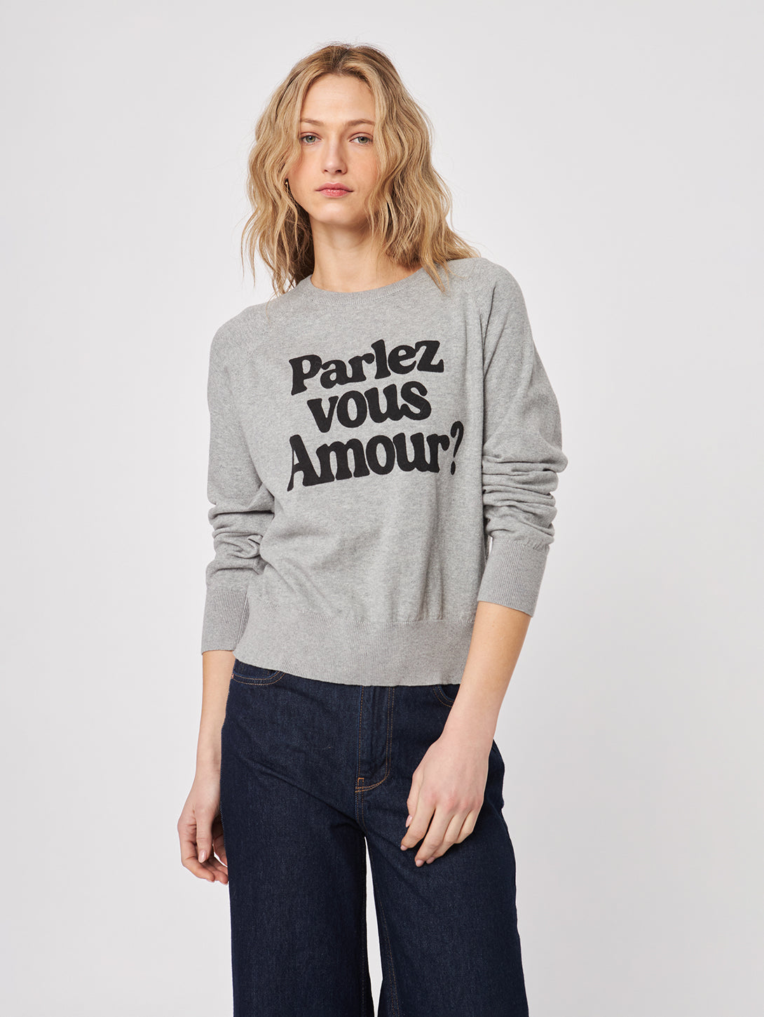Chic and cozy with a French twist, this graphic slogan sweatshirt is perfect for elevating your casual days. Featuring “Parlez Vous Amour” in bold black lettering across the front, it’s crafted from a soft cotton-blend fleece with a relaxed fit and classic crew neckline.