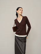 A relaxed-fit cardigan in earthy brown tones. Ideal for cozy layering while maintaining a clean, slightly structured drape.