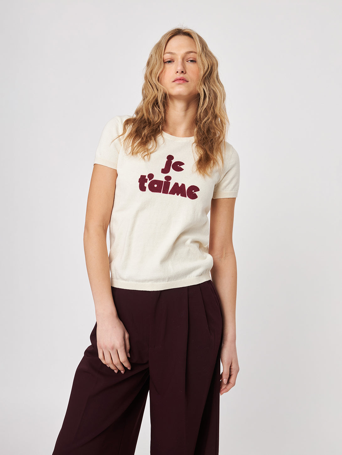 Add a playful French twist to your everyday wardrobe with this effortlessly chic slogan tee. Crafted from soft, breathable cotton, it features a relaxed silhouette and a bold “Je t’aime” graphic across the chest in a vintage-inspired font. A versatile staple to dress up or down.